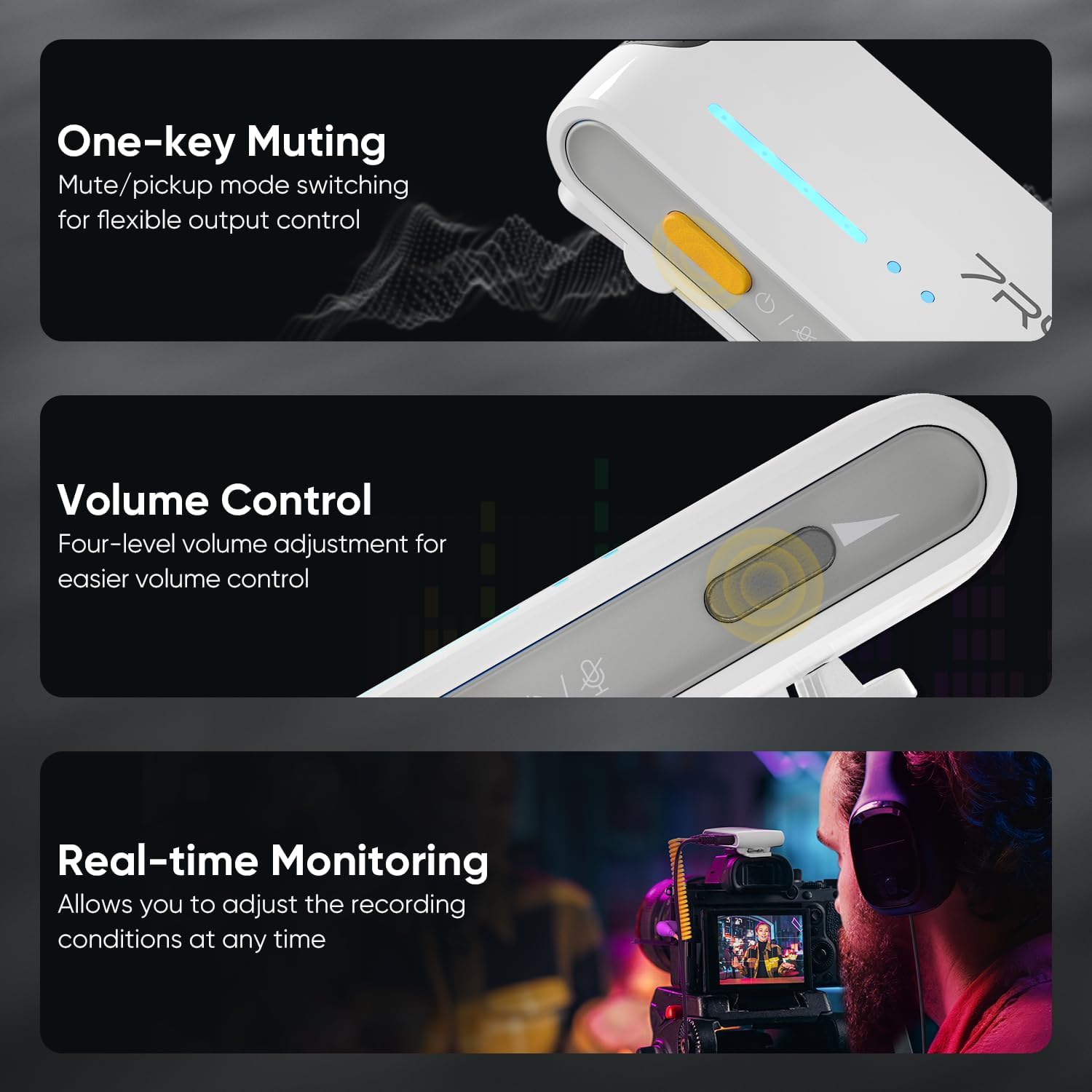 - Special Feature : 48kHz/24bit Recording, AI Denoise, 12.5H Working Time, Four-channel Recording, Real-time Monitoring, Muting/Mono/Stereo Switch 48kHz/24bit Recording, AI Denoise, 12.5H Working Time, Four-channel Recording, Real-time Monitoring, Muting/Mono/Stereo Switch