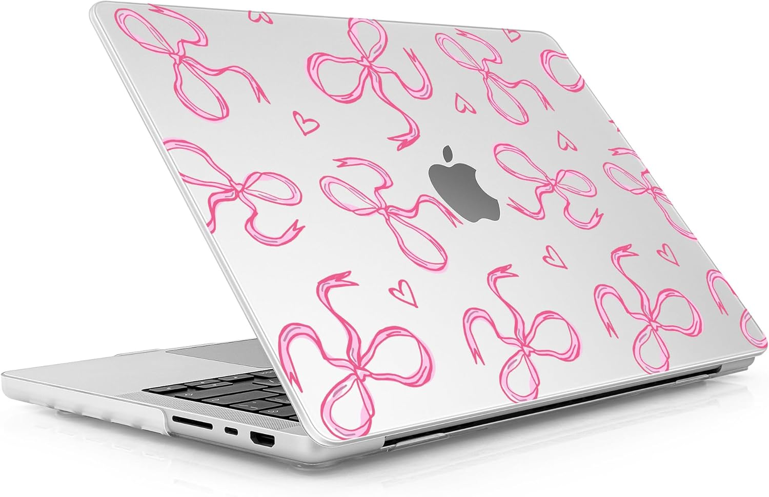 for MacBook Pro 16 inch Case 2021 2022 2023 2024 Release A3186 A3403 M4 A2991 M3 A2780 M2 A2485 M1 Pro/Max, Hard Shell Case with Screen Protector & Keyboard Cover, Pink Bows Heart