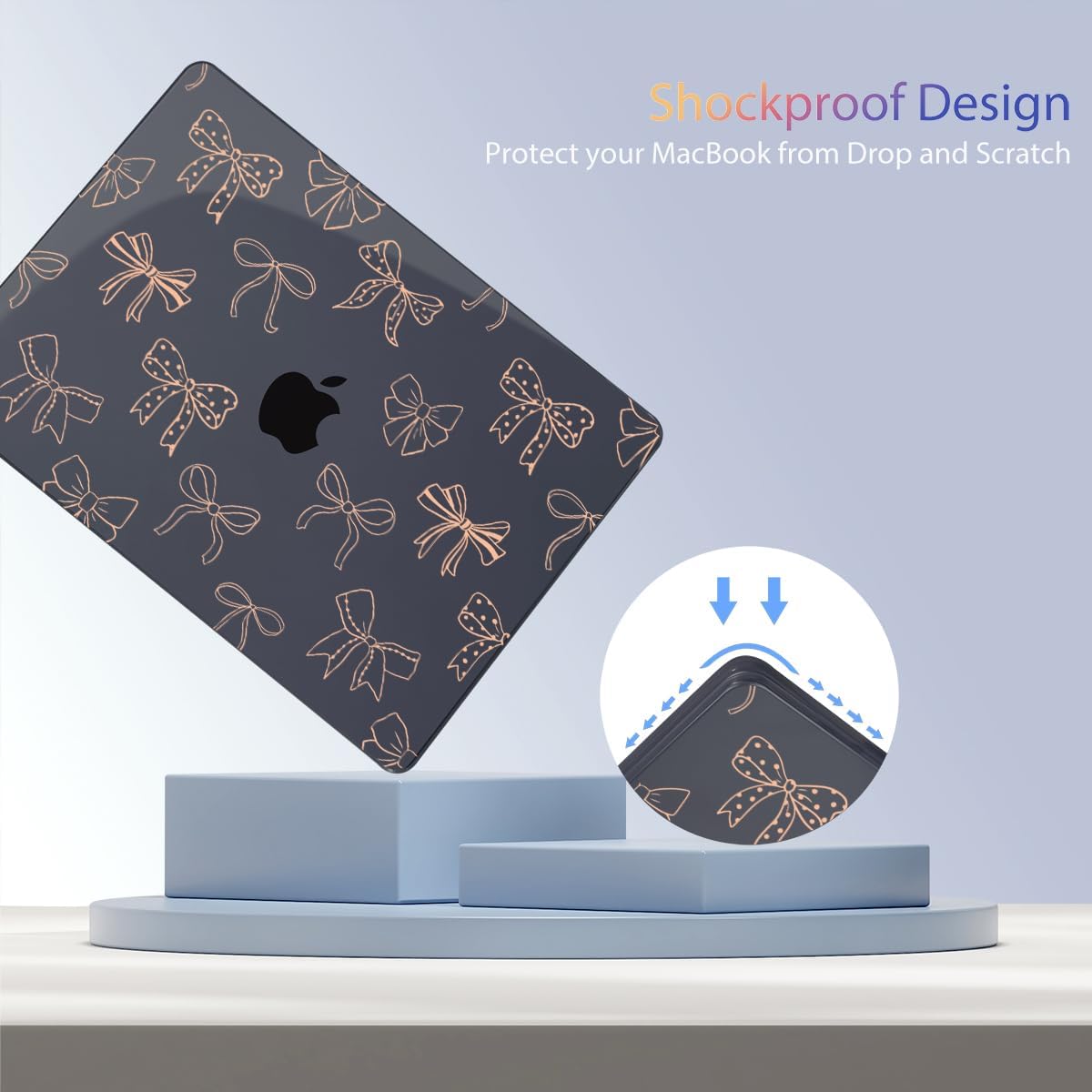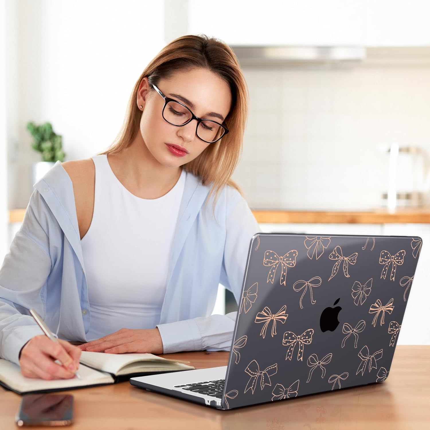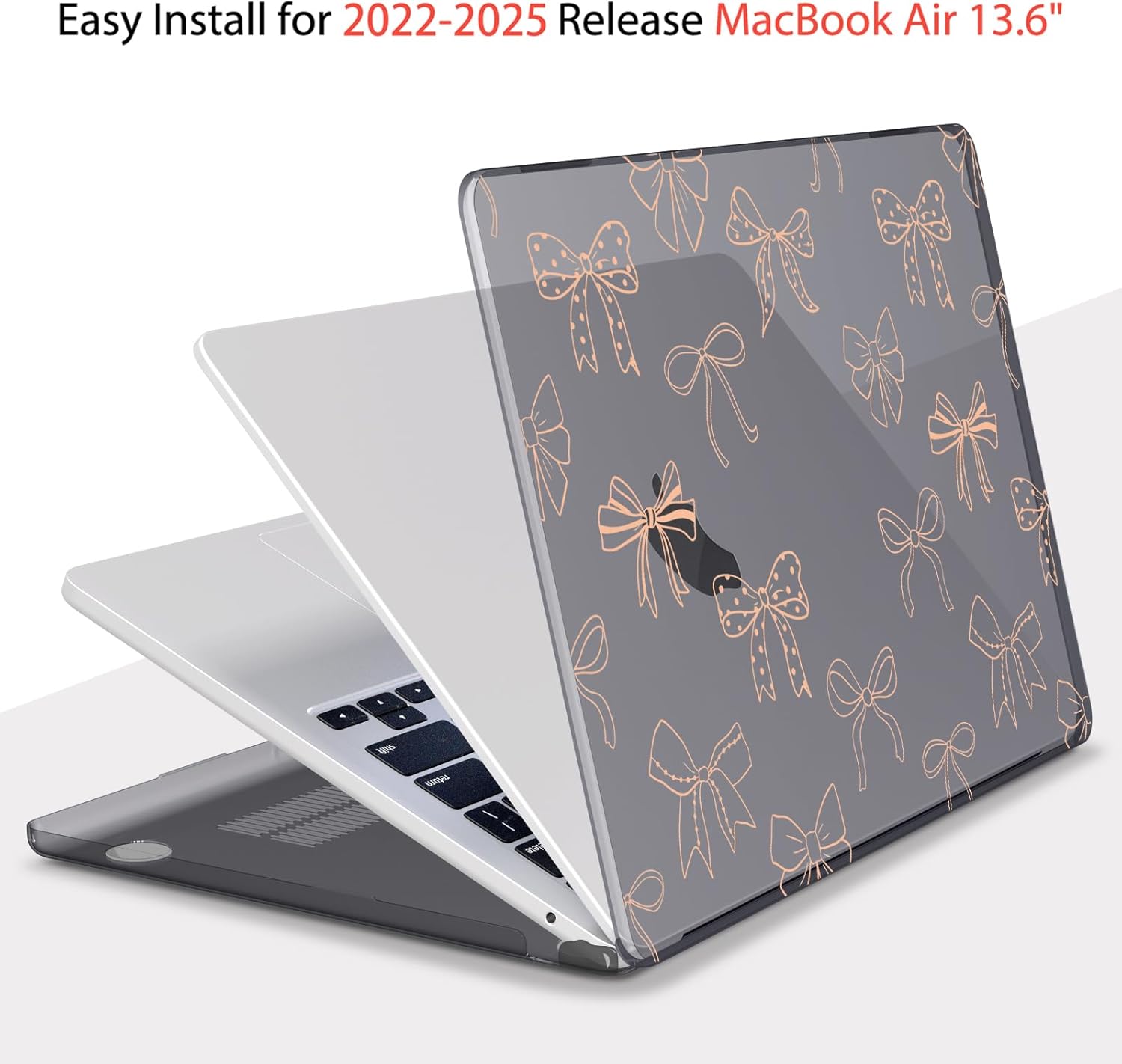 Teryeefi for M4 M3 M2 MacBook Air 13 inch Case 2025 2024 2023 2022 Release A3240 A3113 A2681 Model, for 13.6 inch MacBook Air Hard Shell Case + Keyboard Cover + Type C Adapter, Golden Bowknot-103