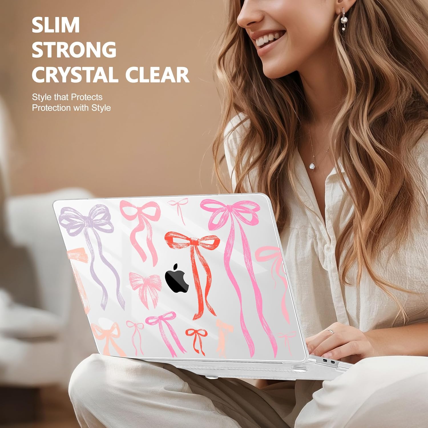 May Chen for MacBook Pro 13 inch Case 2022 2021 2020 Release A2338 M2 M1 A2289 A2251, Plastic Crystal Hard Shell Case Cover for MacBook Pro 13 inch Touch Bar Fits Touch ID, Bows Girly