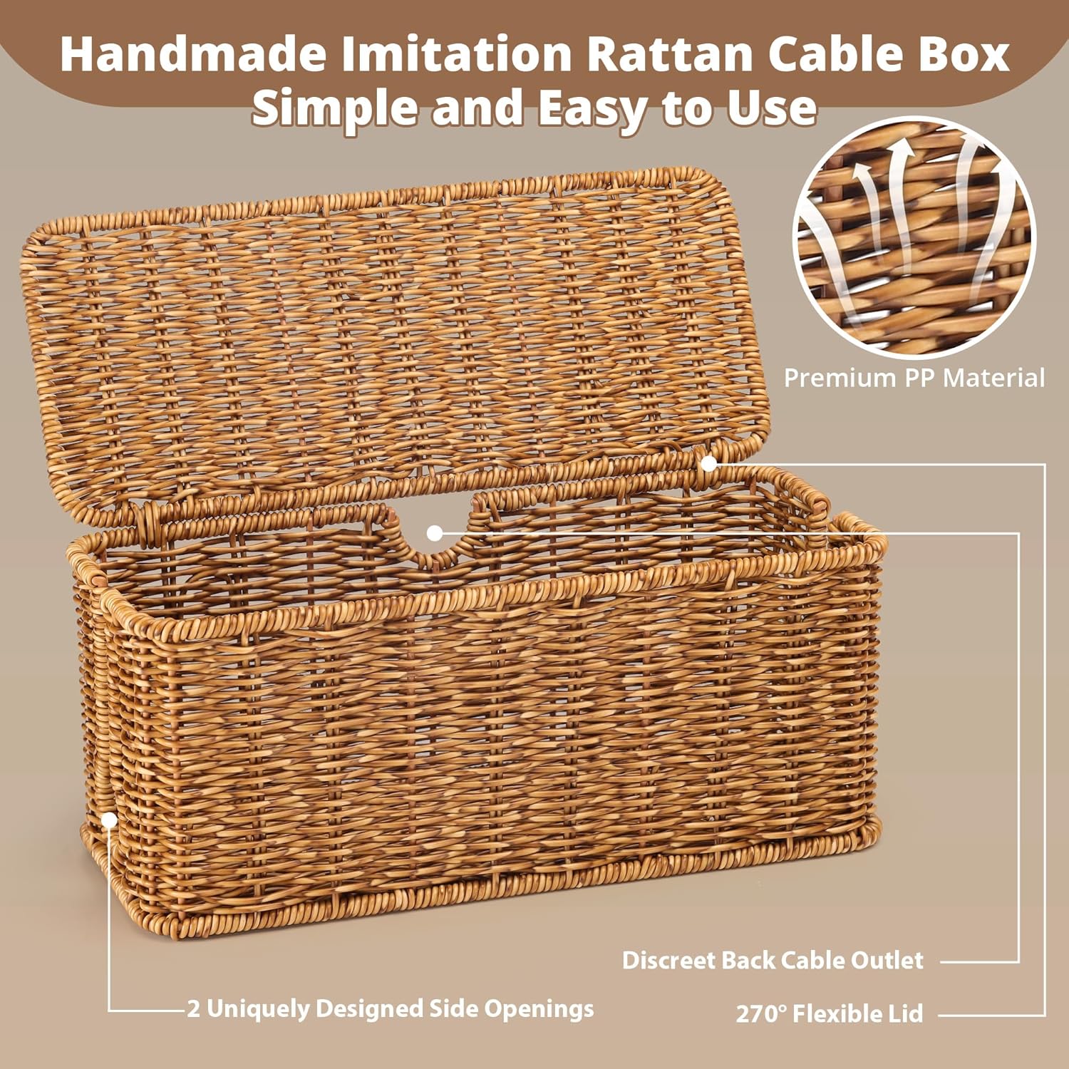 - Elegant Woven Rattan for Aesthetic Appeal: The quality woven rattan adds a stylish touch to the cable box, making it a beautiful addition to your decor. It blends seamlessly into various styles, hiding unsightly cables while enhancing the look of your workspace or living area