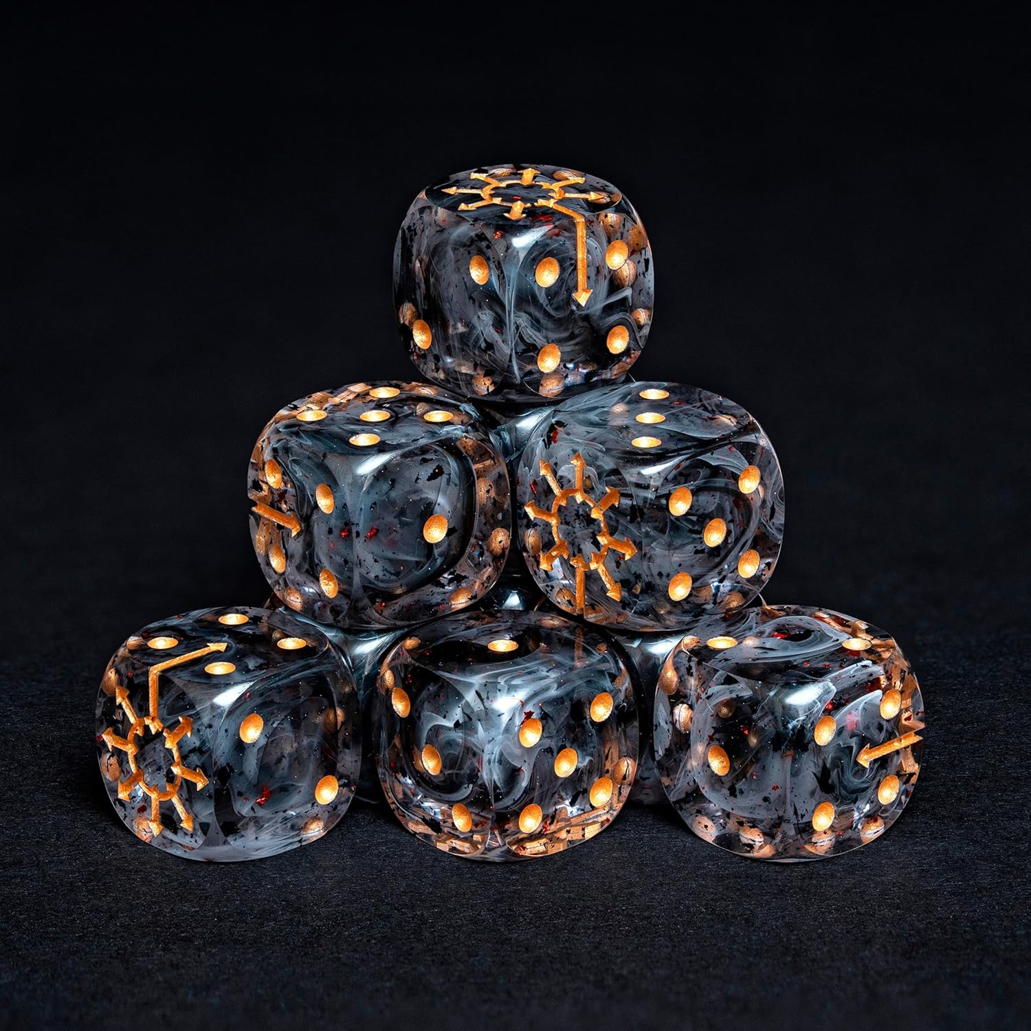 - 🎯 Balanced for Carnage Crafted from premium epoxy resin with smoothed edges and a total set weight of 60g — these dice feel solid, roll true, and drop with the authority of a warlord’s command.