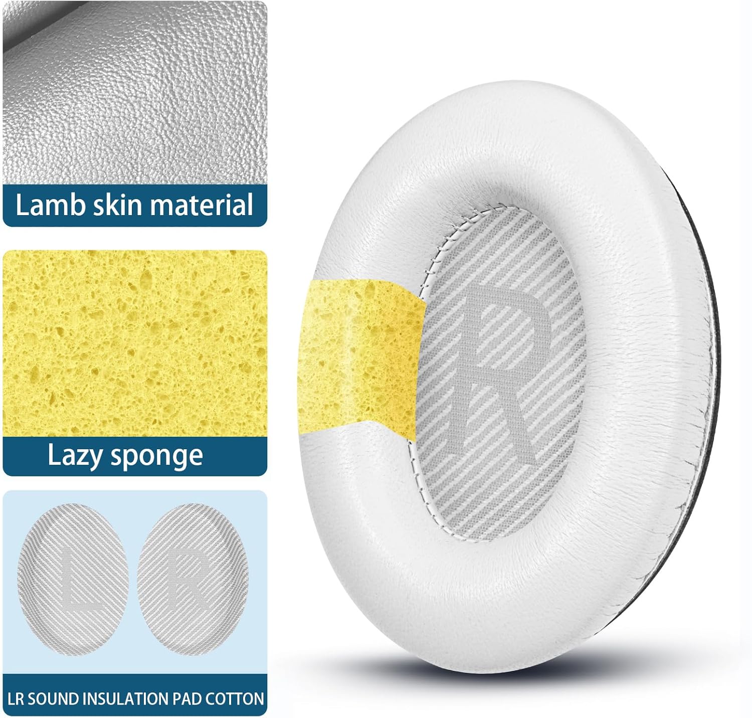 Headphones Replacement Ear Pads, Sheepskin Ear Cushions for Bose QuietComfort 35 (QC35) Improved Durability, Ear Pads Cushions with High-Density Foam, Thickness and Sound Isolation - White
