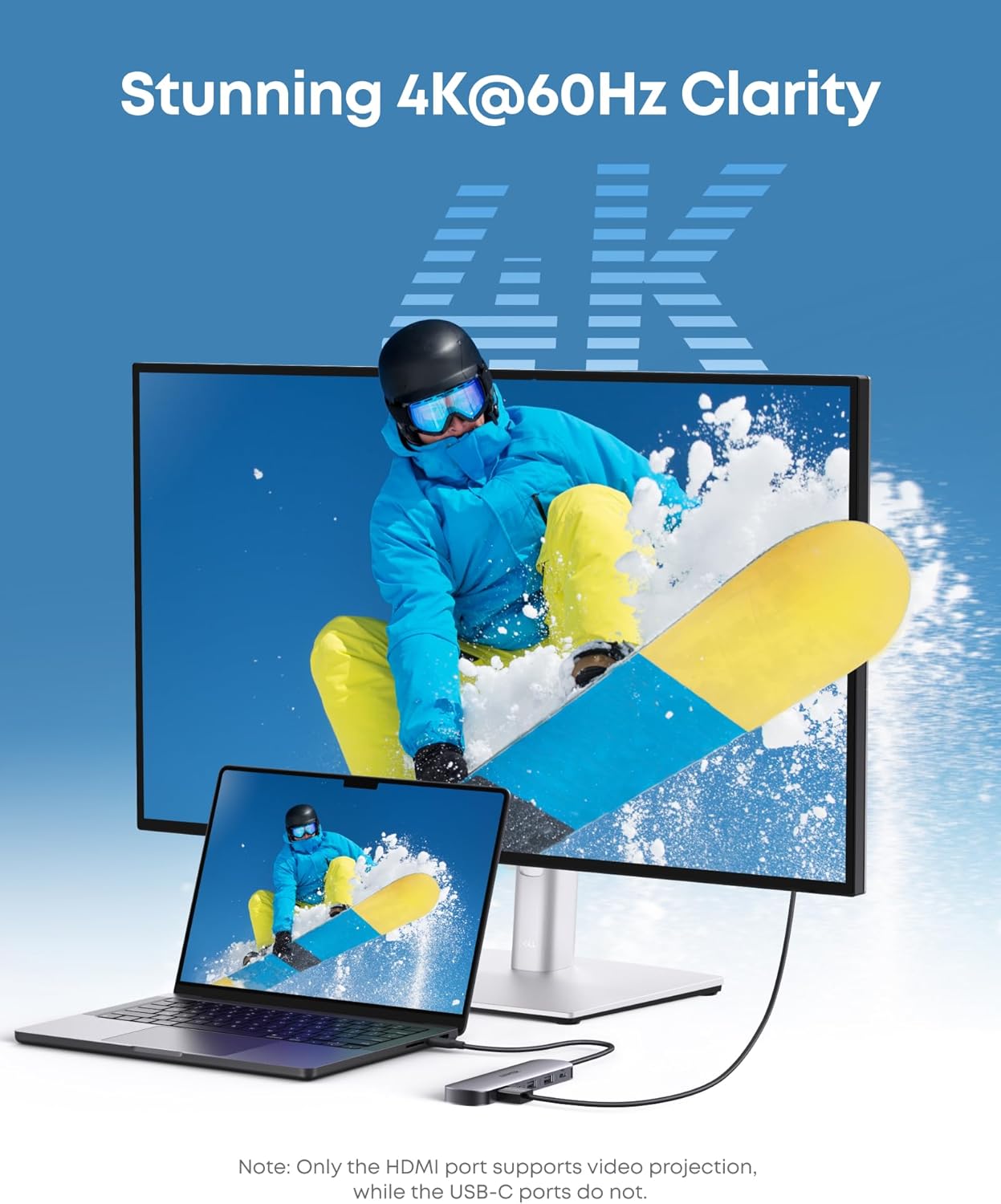 Anker USB C Hub, 7-in-1 Multi-Port USB Adapter for Laptops, 4K@60Hz USB C to HDMI Splitter, 85W Max Power Delivery, 3xUSBA & C 3.0 Data Ports, SD/TF Card, for Type C Devices (Charger Not Included)