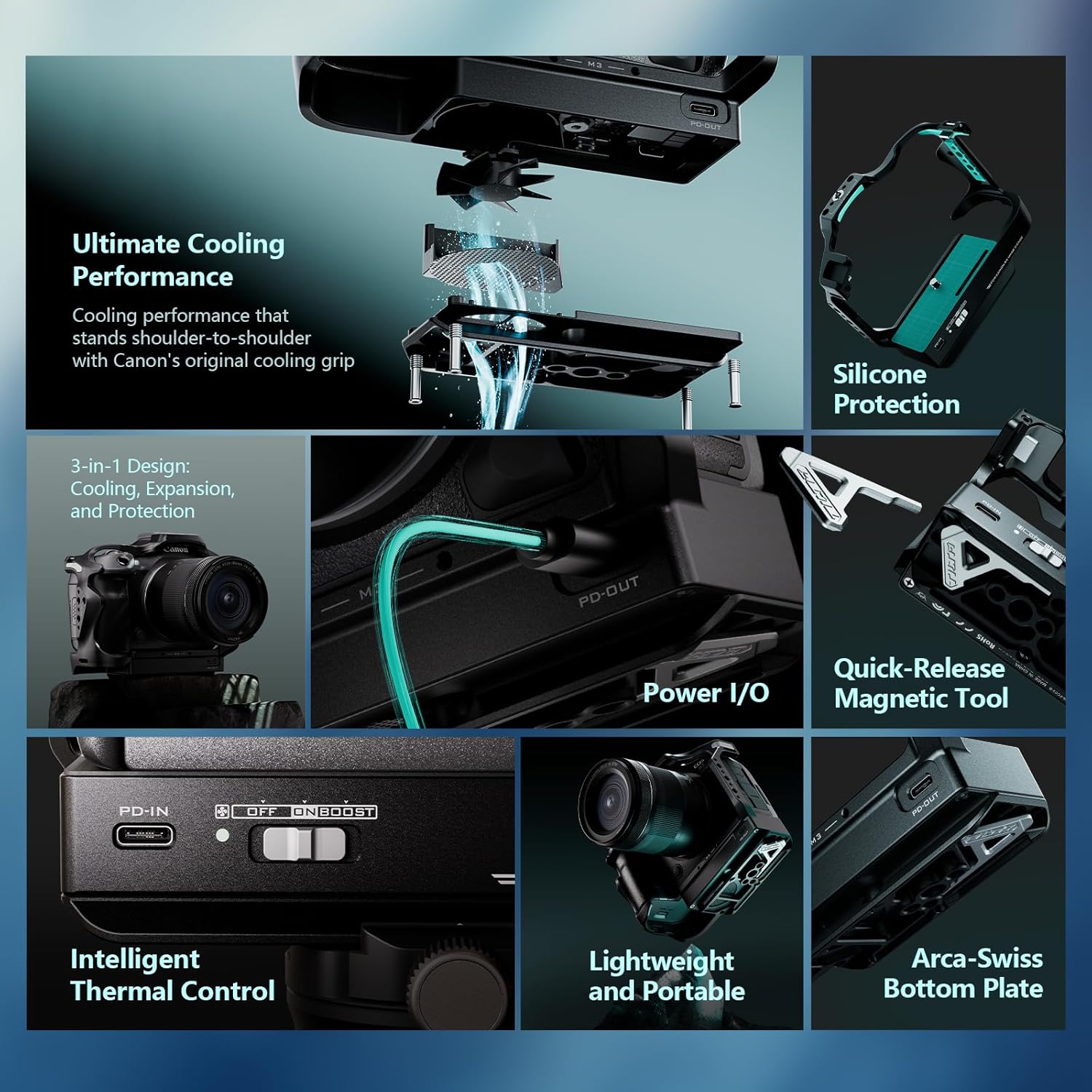 Tilta Full Camera Cage with Cooling System Compatible with Canon R5 Mark II - Black