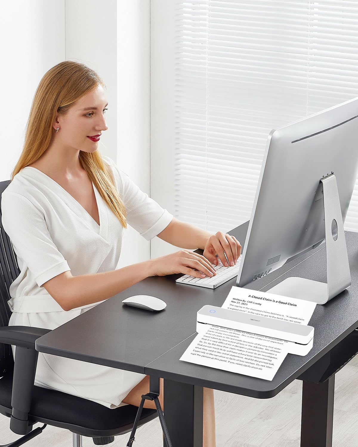 - [Long Battery Life]Built-in 2000mAh large-capacity lithium battery, can print 240 sheets of paper continuously without interruption, supports Type-C fast charging (fully charged in 2 hours), and meets all-weather mobile office needs.