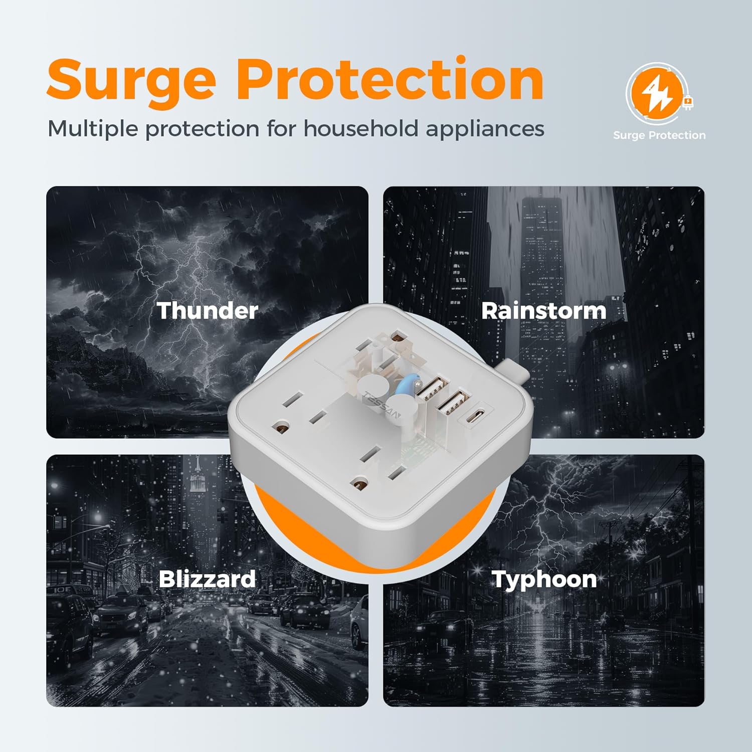 - Space Saving: The size of this USB power strip is 3.46×3.46×1.05 inch, saving the space of your desktop and bench; Surge protector power strip is suitable for use in dorm room, home, office, bedroom, etc