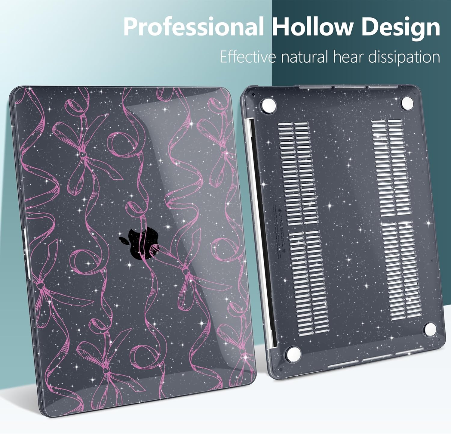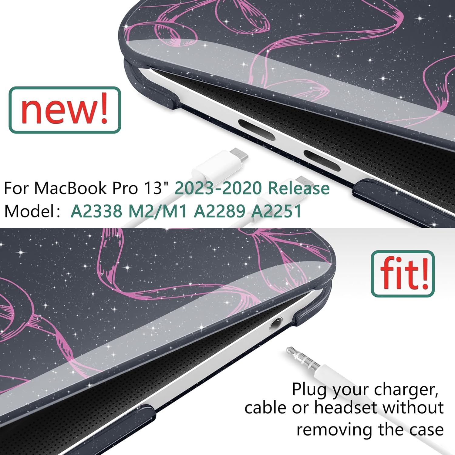 TWOLSKOO Compatible with MacBook Pro 13 inch Case 2023-2016 A2338 M2/M1 A2251 A2289 A2159 A1989 A1706, Plastic Hard Shell Cover & Keyboard Skin & Screen Protector, Sparkly Bows