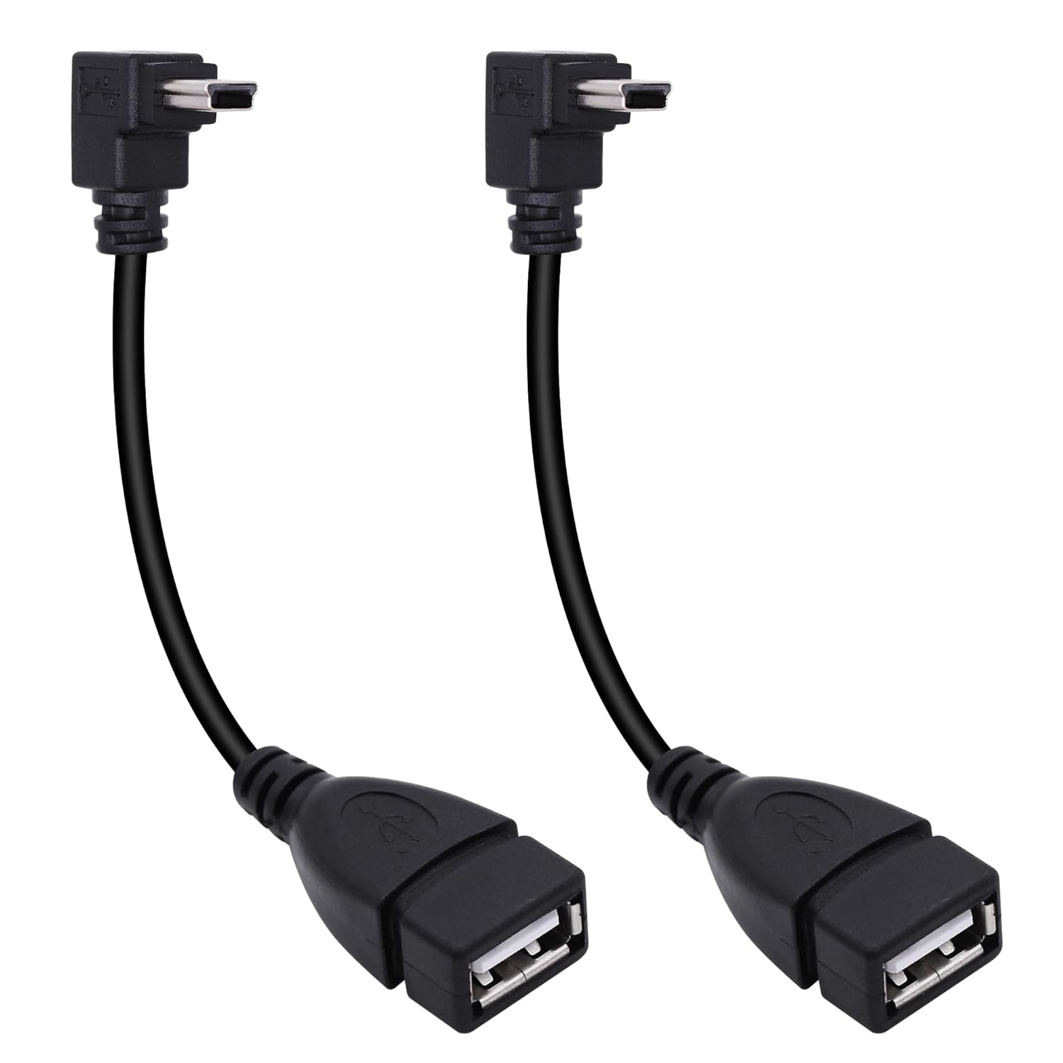 90 Degree Mini USB to USB A OTG Adapter Cable 5.5in Down Angle Mini USB 5-Pin Type B Male to USB Type A Female Adapter Cord for Digital Cameras,Black,14cm(2 Pack,Down)