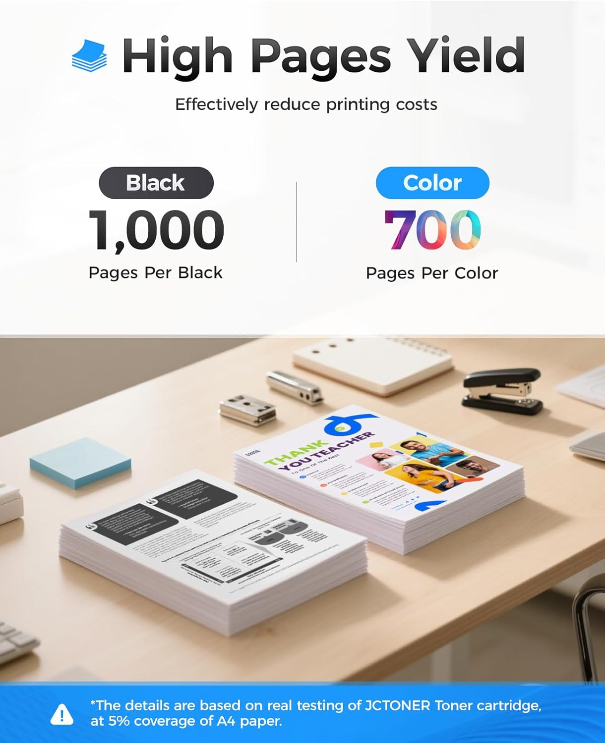 - High-Yield: up to 1,000 pages per 116A Black and 700 pages per 116A Color (Total 3,100 pages, 5% coverage).