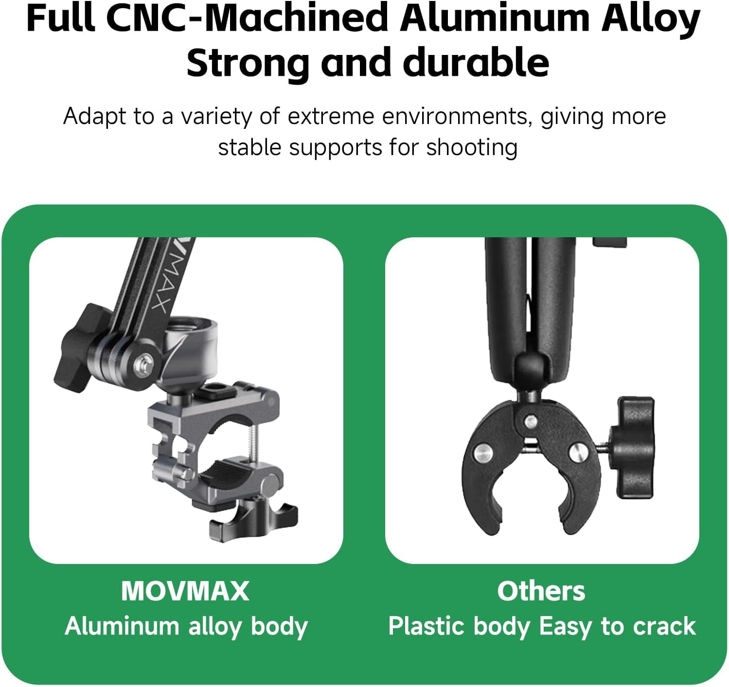 - Wide Compatibility: The Blade Arm Rod Clamp Kit from MOVMAX is compatible with DJI Osmo Pocket 3, Insta 360, GoPro HERO 12 action cameras, offering quick & secure rod/pipe clamp mounting and a 5.3 to 17.6 oz load capacity for capturing dynamic moving shots