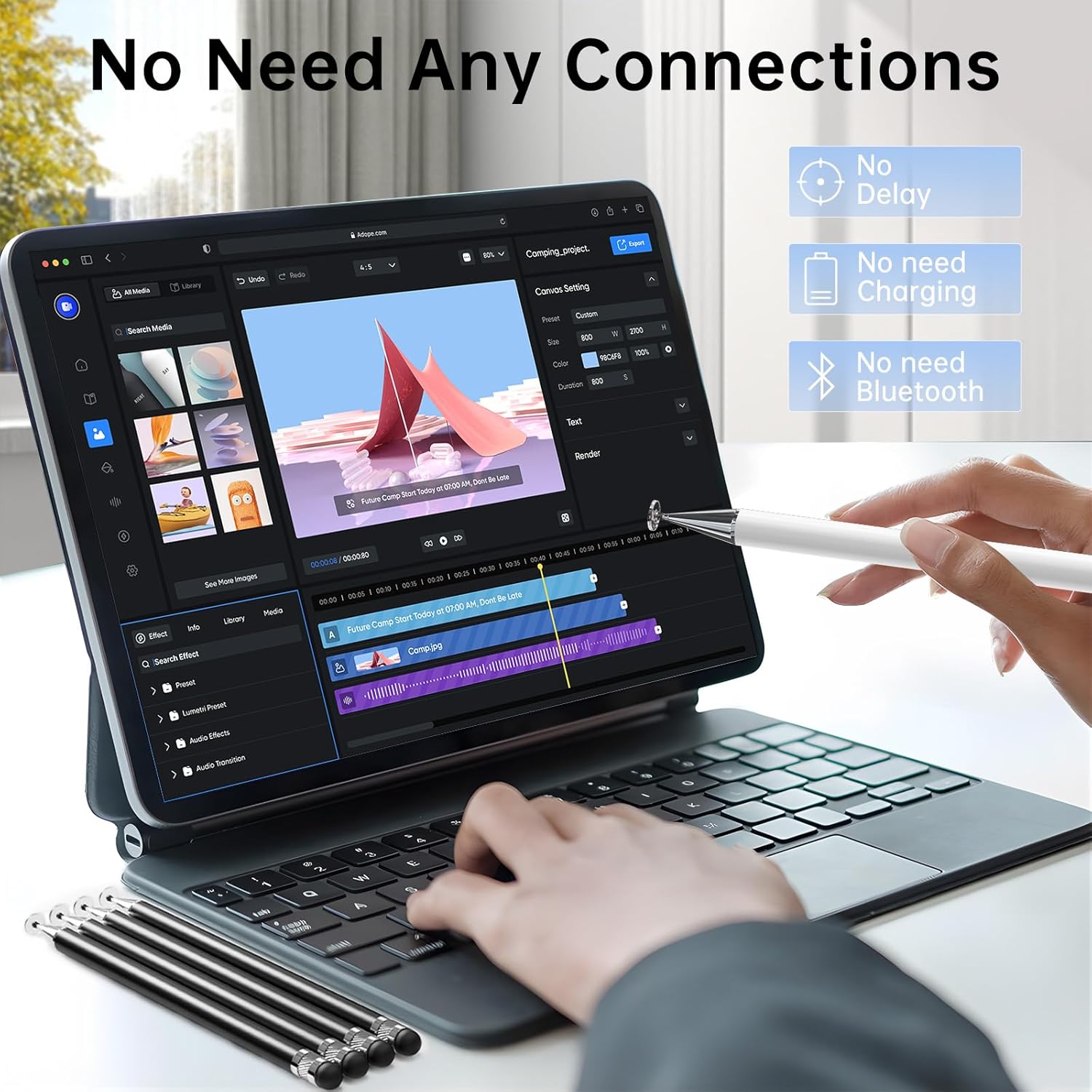 - 【2-in-1 Stylus Pen】Tablet pen for touch screen, made of lightweight alloy, no need for Bluetooth connection or charging, ready to use after opening the package, comfortable in hand, sturdy, durable and anti-aging, so you can use it anytime, anywhere Easily capture inspiration and make everything feel like writing on paper, giving you a more accurate writing/drawing/touching experience.