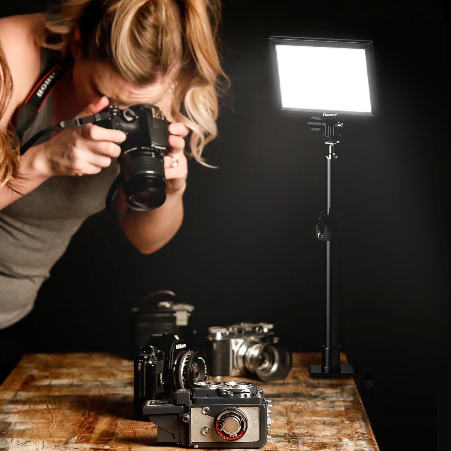 - 【What You Will Get】:The package includes LED panel light *2, Metal Desktop Bracket*2, Gooseneck Tubes*2, 6.6 feet long adapter*2. Dazzne brand focuses on professional photography lights, camera lights, video lights for 20 years, and pays great attention to user experience. PLEASE ATTENTION: don't included batteries! ! If you encounter any problems, please contact us at the first time, we will reply to you within 12 hours!