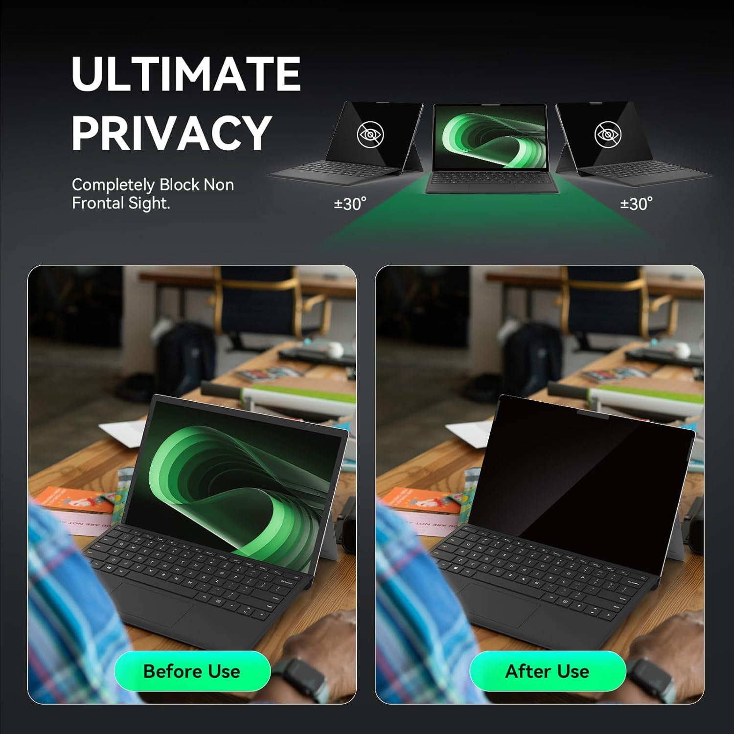 - 【Suitable for Various Occasions】- The Privacy and Blue light Screen Filter is the ideal solution for healthcare providers, mobile workers, commuters, students, and business travelers. Now you can stay compliant and safeguard sensitive corporate information while working in airplanes, subways, airports, and other public areas.