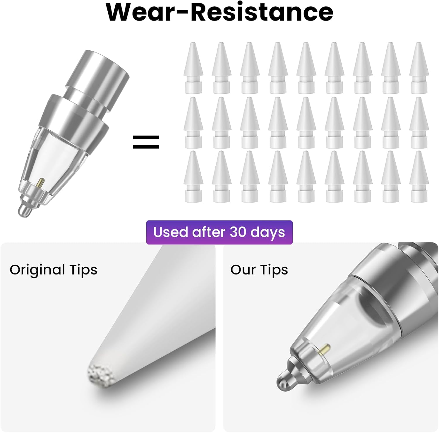 - Improved Wear-Resistance: Our all-new upgraded Apple pencil tips are made of high-strength stainless steel, offering superior wear resistance and friction on paper-like screen protectors, while not scratch your screen protector