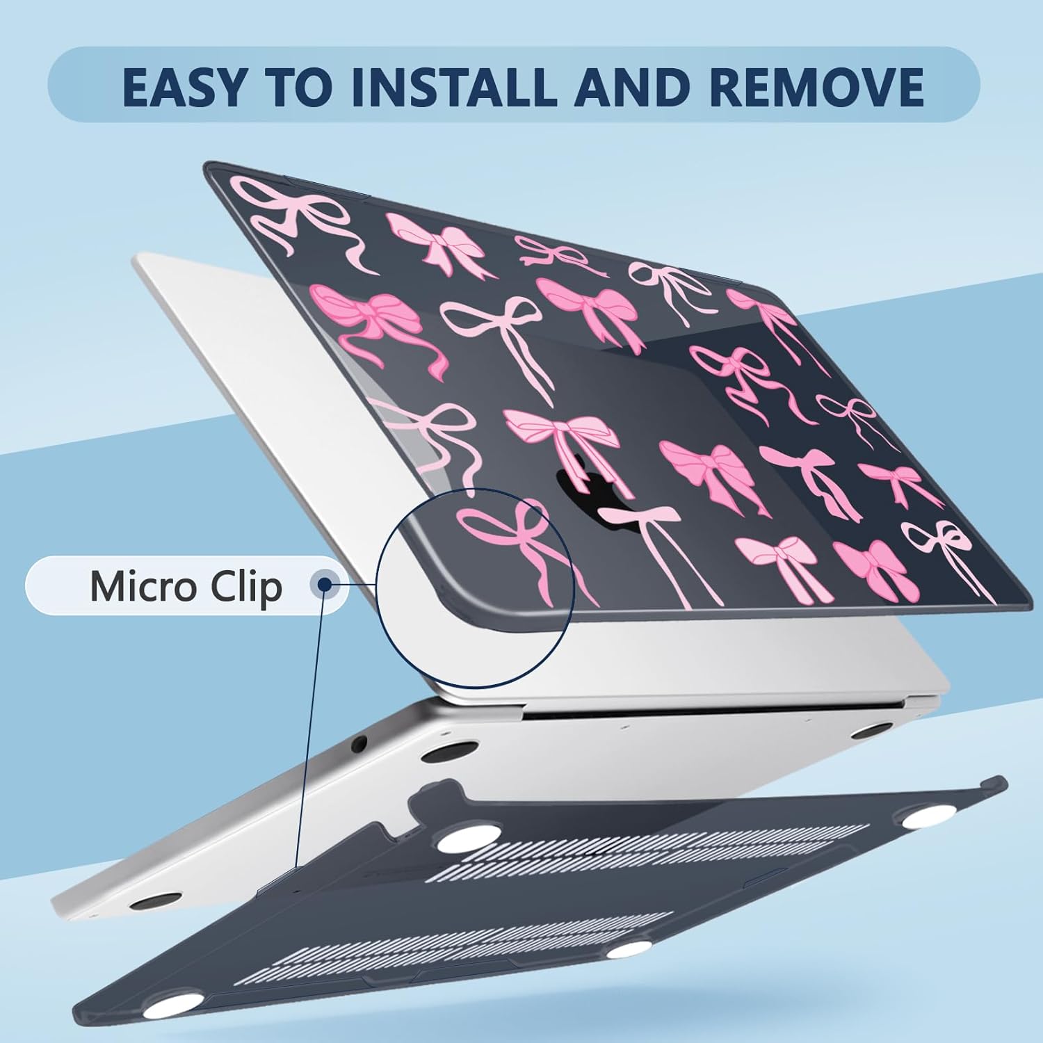 Compatible with MacBook Air 13.6 inch Case, M4 A3240/M3 A3113/M2 A2681 (Released 2025 to 2022), Hard Shell, Keyboard Cover, Screen Protector, Webcam Cover & Type-C Adapter, Black Bows