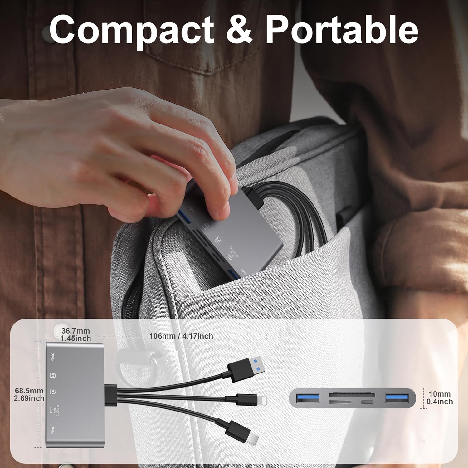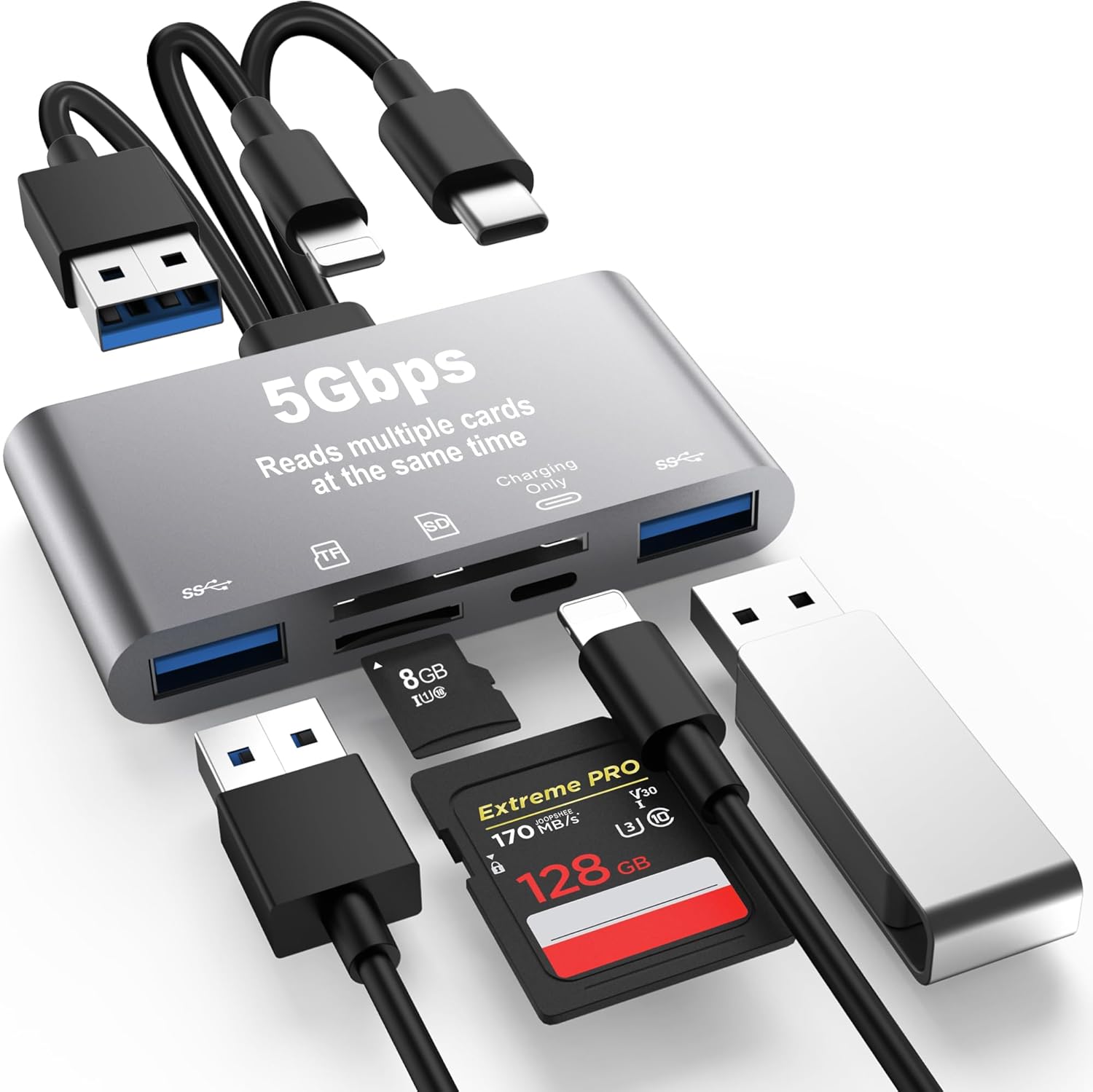 5-in-1 SD Card Reader,High-Speed USB 3.0 Adapter for Phone/Pad USB C/A Devices with TF&SD Card Slots, Supports SD/TF/SDHC/SDXC/MMC