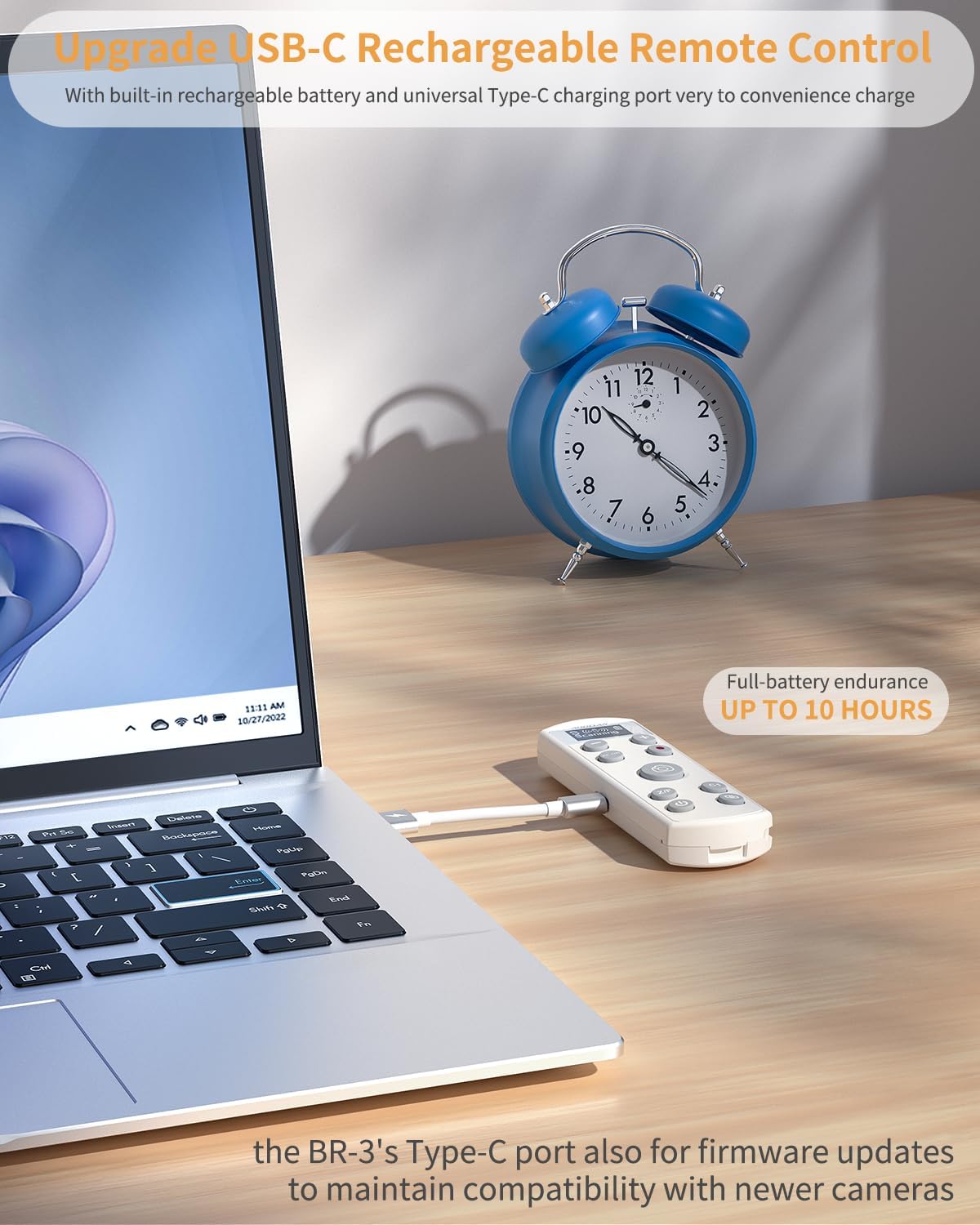 - Upgraded USB-C Rechargeable Design: This wireless remote control for Sony cameras features a built-in rechargeable battery and a universal USB-C charging port, allowing you to conveniently charge it with your smartphone charger. With a full-battery endurance of up to 10 hours, this camera shutter remote control ensures reliable performance. Additionally, its USB-C port supports firmware updates to maintain compatibility with newer camera models.