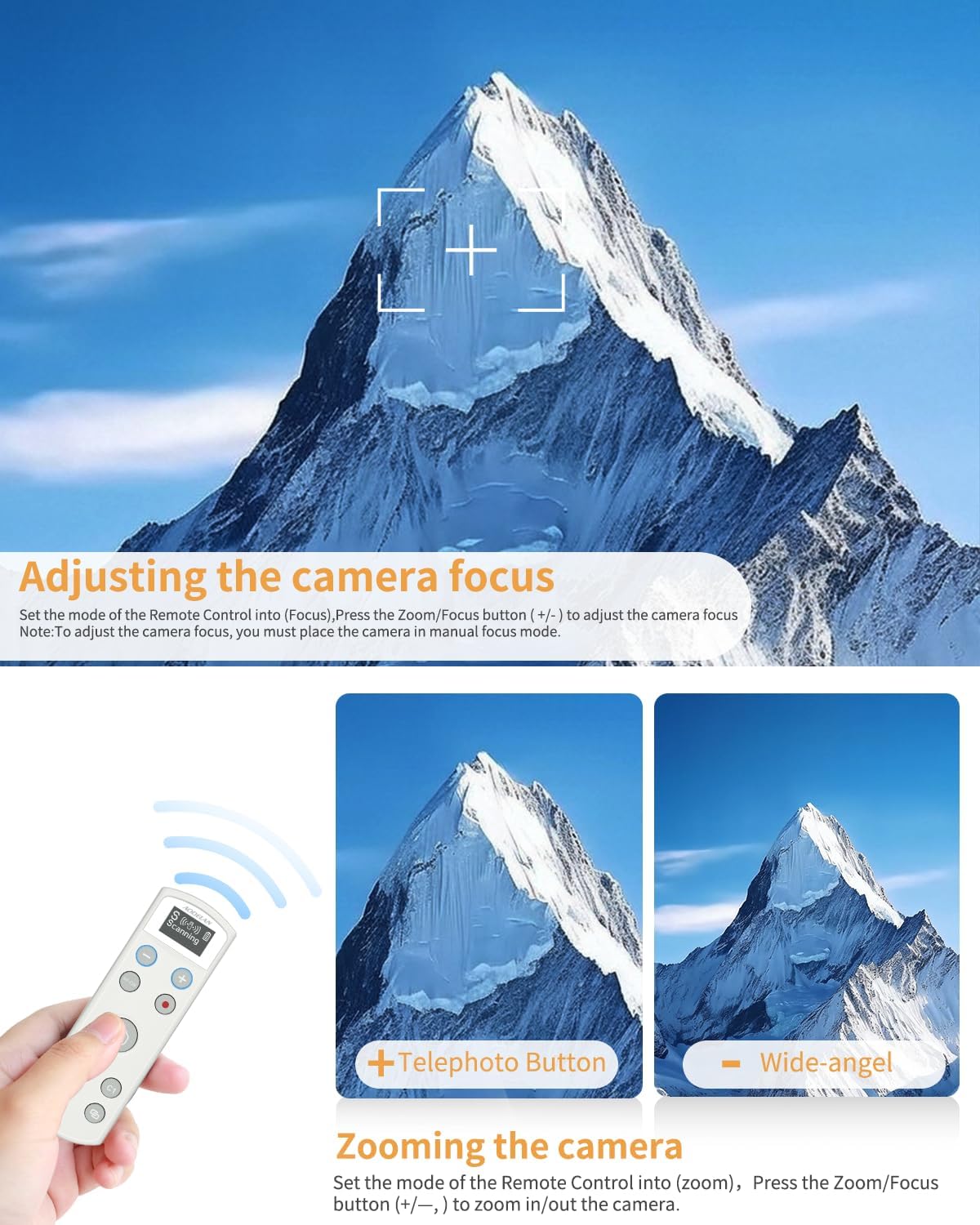 - Zoom & Focus Control – The aodelan camera remote control for sony adjust framing and focus remotely to prevent camera shake. Perfect for macro shots and focus stacking. (AF mode: Half-press to focus)