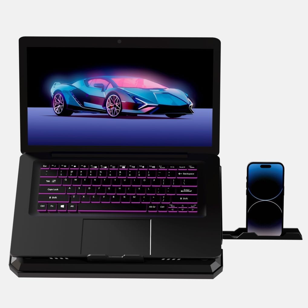 Gaming Crystal Shell Laptop Cooling Pad with Phone Holder, Dual High-Speed Fans, 8-Level Adjustable Height, RGB Lighting, Anti-Slip Base, USB-A & USB-C Ports โ Black (for 10-17โ Laptops)