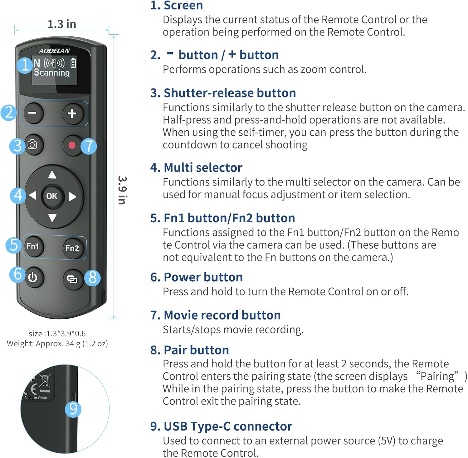 - Shooting still photos and videos: This remote control supports shooting still photos, short videos, Bulb shooting,360 ° all-round remote control, with a remote control distance of up to 10m/32.8 feet. Please adjust the camera to the corresponding mode.