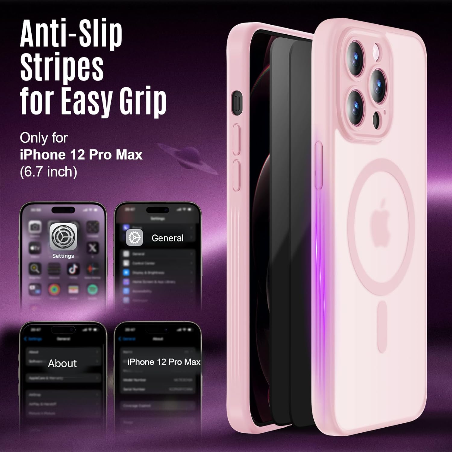 Designed for iPhone 12 Pro Max Case, Compatible with MagSafe, with Privacy Screen Protectors X2, [Camera Protection] [15FT Military Drop Protection] Shockproof Phone Case, 6.7", Pink