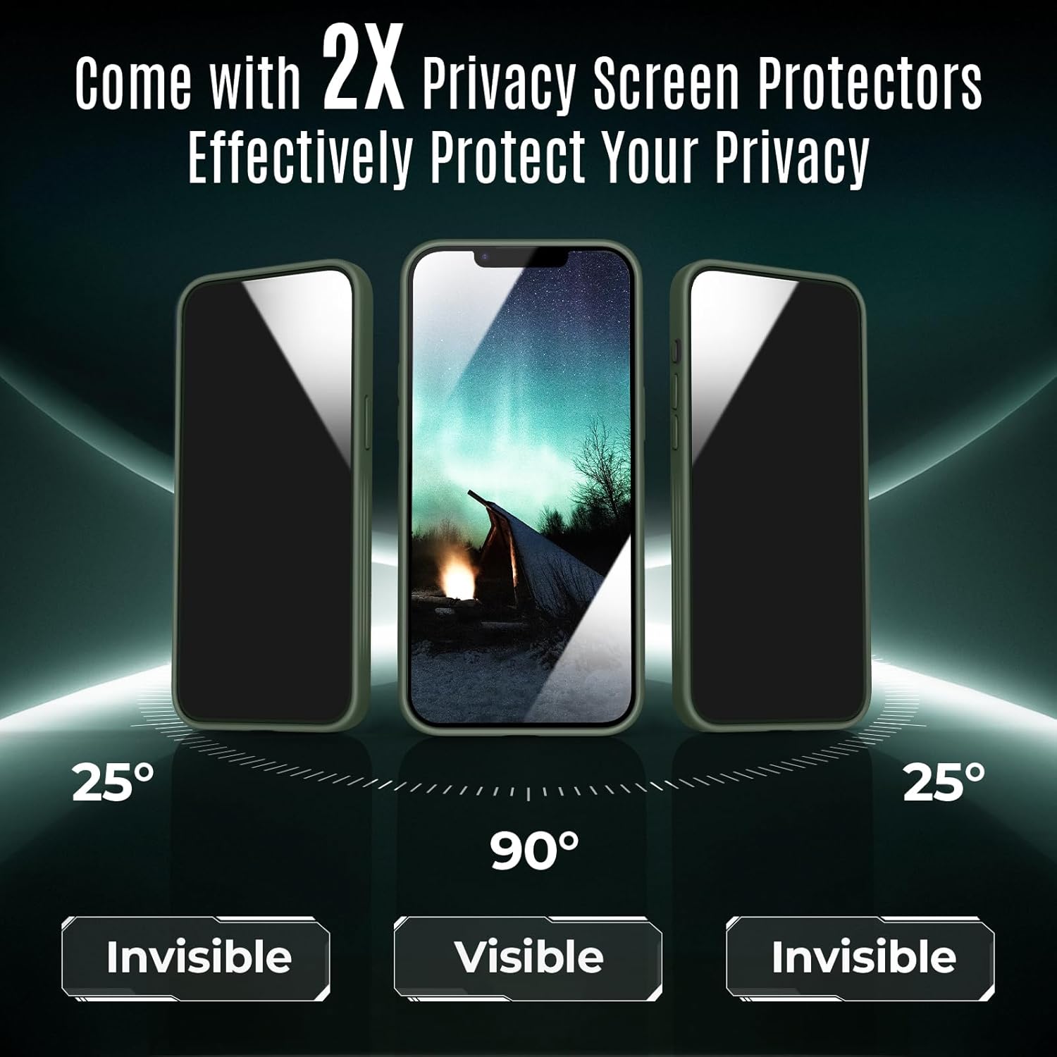 Designed for iPhone 12 Pro Max Case, Compatible with MagSafe, with Privacy Screen Protectors X2, [Camera Protection] [15FT Military Drop Protection] Shockproof Phone Case, 6.7", Alpine Green