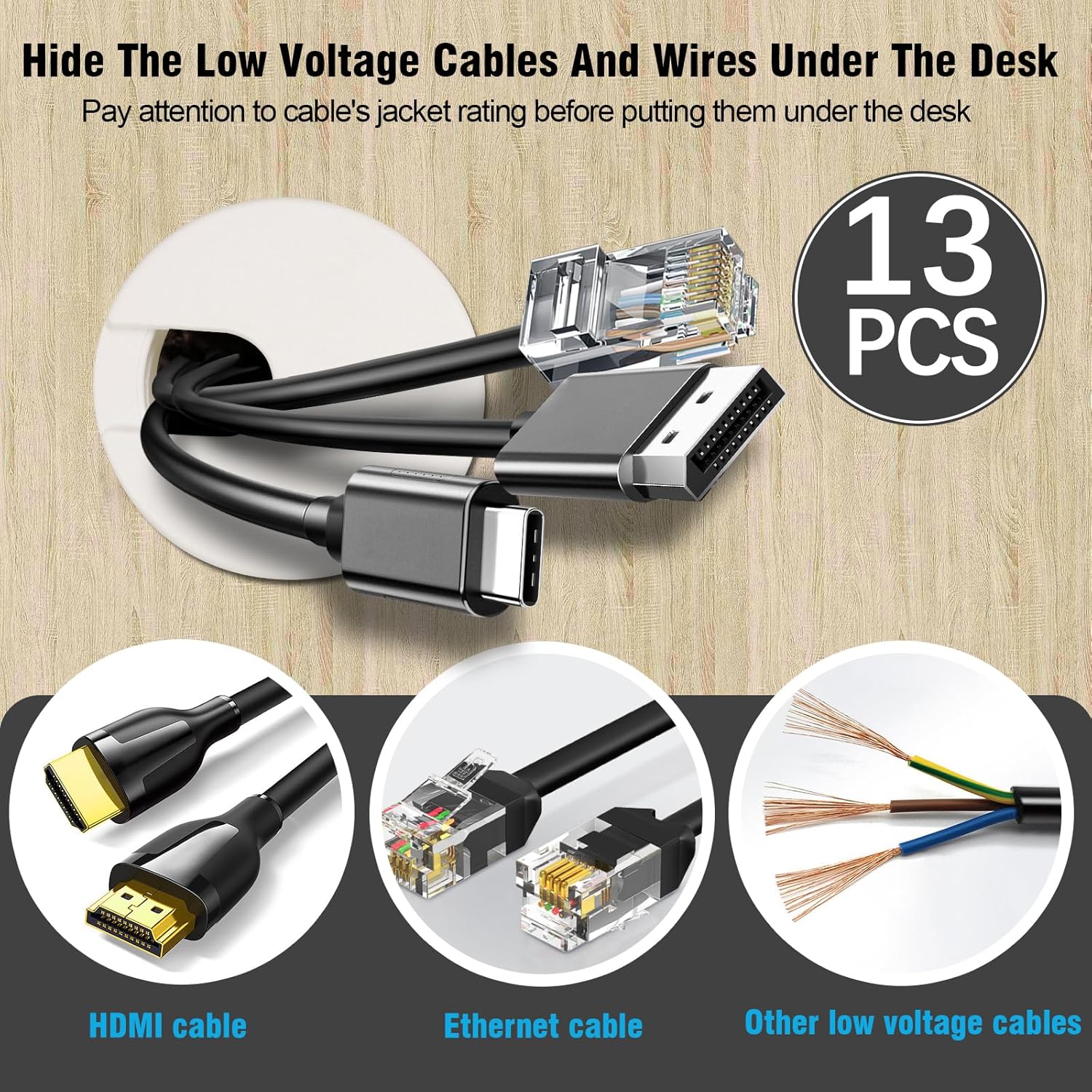 - HIGH-QUALITY DESIGN -- Our desk grommets are meticulously crafted from high-quality ABS material and designed to withstand daily wear and tear that will resist cracking, fading, or deforming over time. The smooth edges reduce the risk of cable damage, while the plastic construction ensures flexibility and impact resistance.