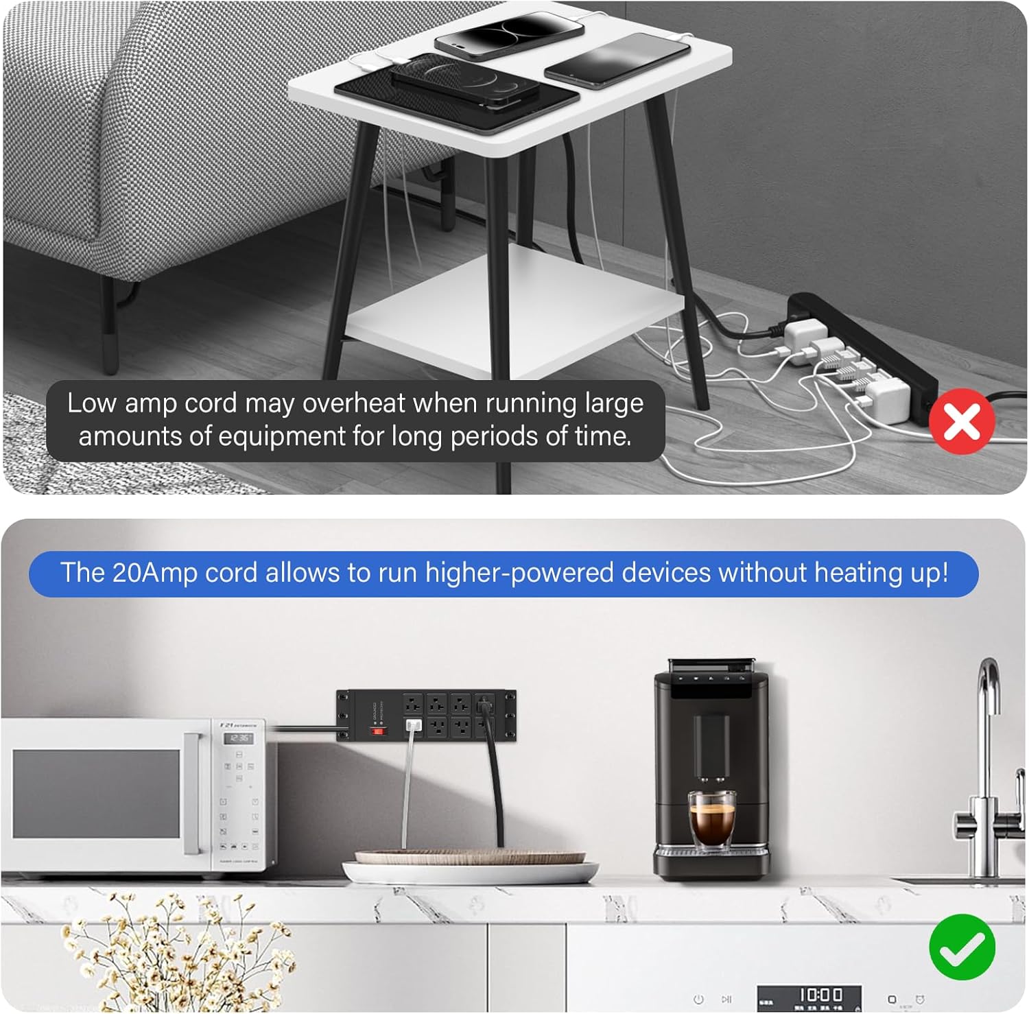 - Black Heavy duty power strip 20 amp with 8 outlets, 5-20R, 6-20R and come with standard 3 prong 5-15P plug. Wall mount design, can be applied to high power industrial equipment.