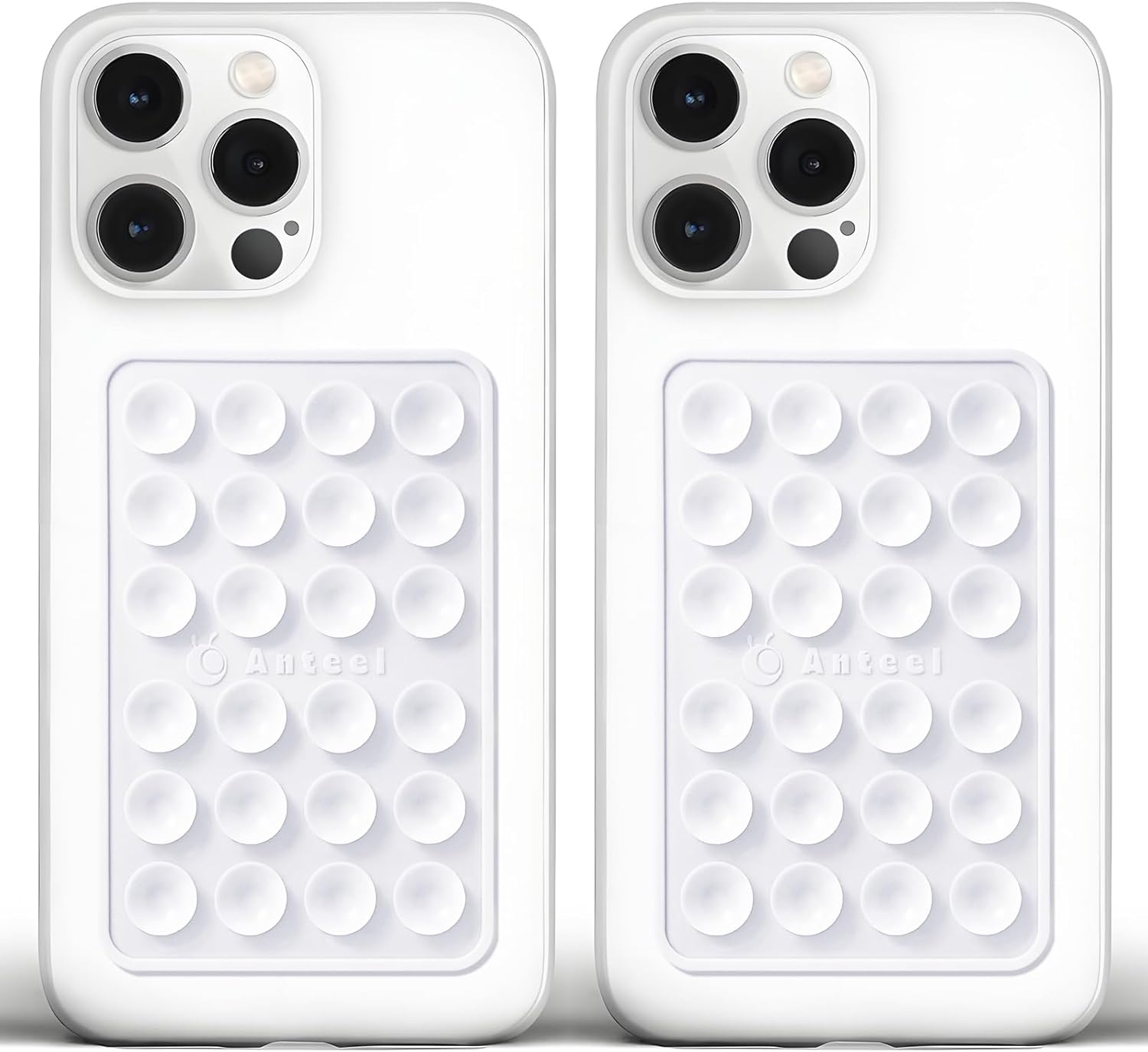 Anteel Medium-Sized Silicone Suction Phone Case Adhesive Mount, Enhanced Suction Power and Upgraded Thickened Sticky Phone Grip, Durable, Hands-Free Sticky Phone Holder, 2.28"x3.46" (WHT&WHT)