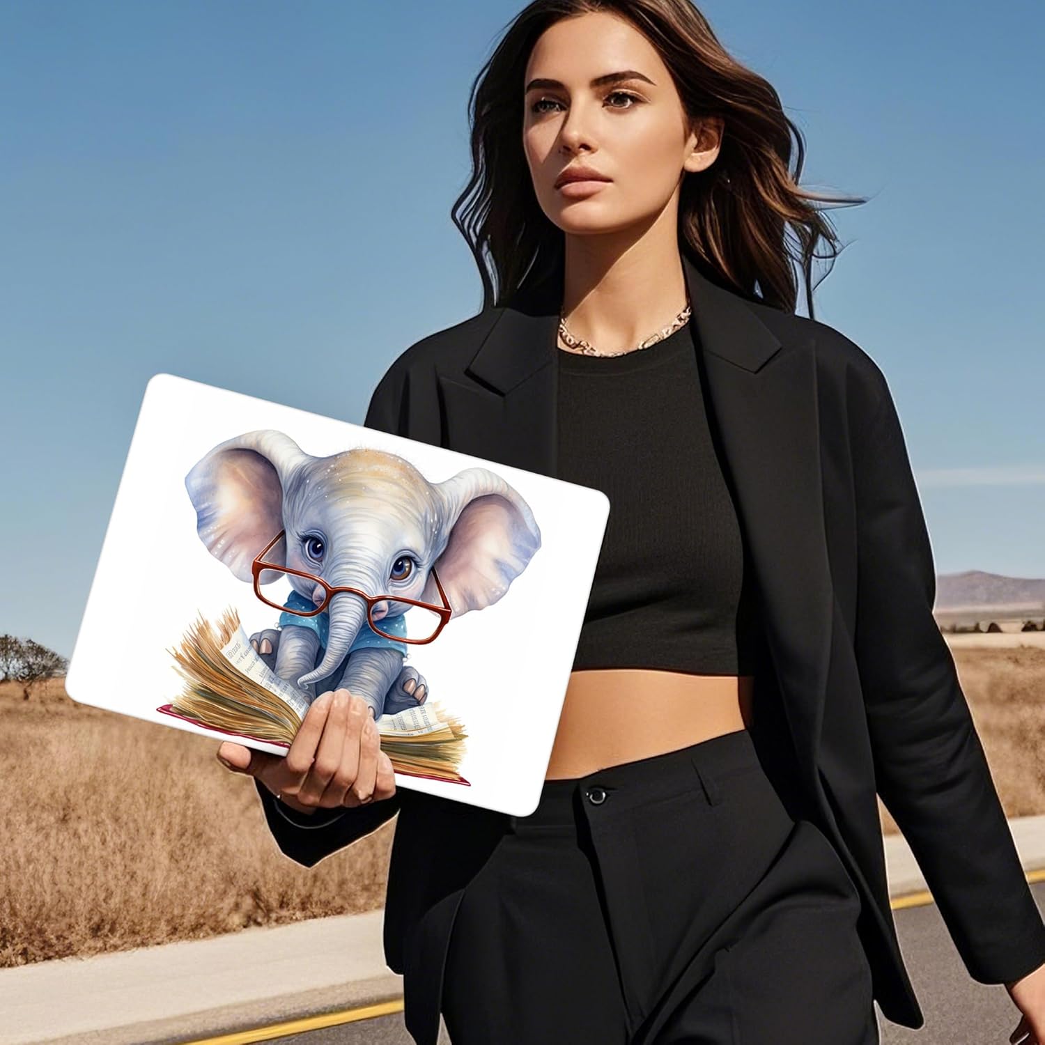 Mektron Compatible with M4 MacBook Air 15 inch Case 2025 A3241 2024 2023 M3 A3114 A2941 M2 Liquid Retina Display Touch ID, Plastic Hard Case & Keyboard Skin & Screen Protector - Cute Elephant C341