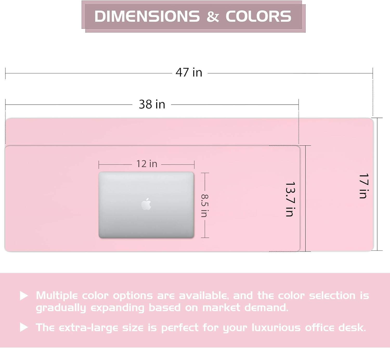 Aothia Leather Desk Pad Protector, Office Desk Mat, Large Mouse Pad, Laptop Desk Pad, Non-Slip PU Leather Desk Blotter, Waterproof Desk Writing Pad for Office and Home (Pink, 47" x 17")