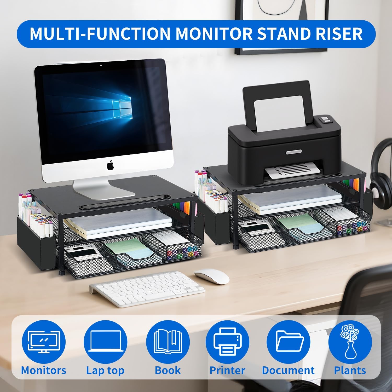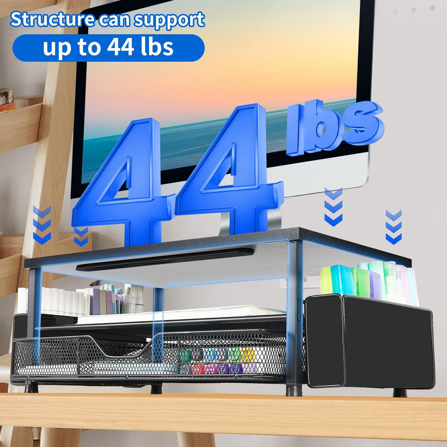 - 【Achieve Perfect Ergonomic Height】Elevate your screen to eye level and end neck strain. Our monitor stand for desk organizer promotes a healthier posture for those long workdays, transforming your desk into a comfortable and pain-free workspace