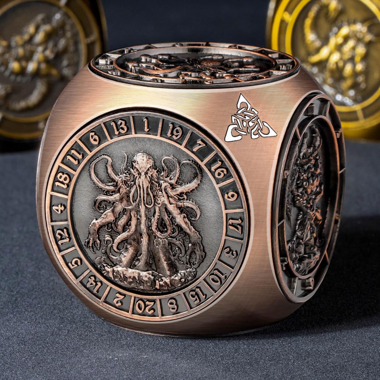 7 in 1 D6 Spinner DND Dice Set D&D, Metal Cube D and D Dice with Gift Box, Dungeons Dragons Role Playing Dice, Copper