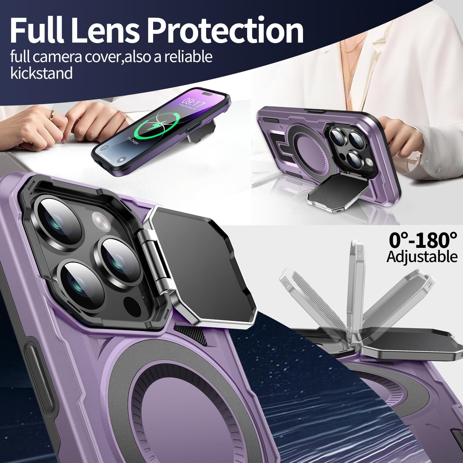 Camera Stand Case for iPhone 14 Pro Max, [Compatible with Mag Safe] [Lens Cover] 2024 Version Military Grade Protective Soft Case for iPhone 14 Pro Max 6.7 inch Men Women, Purple