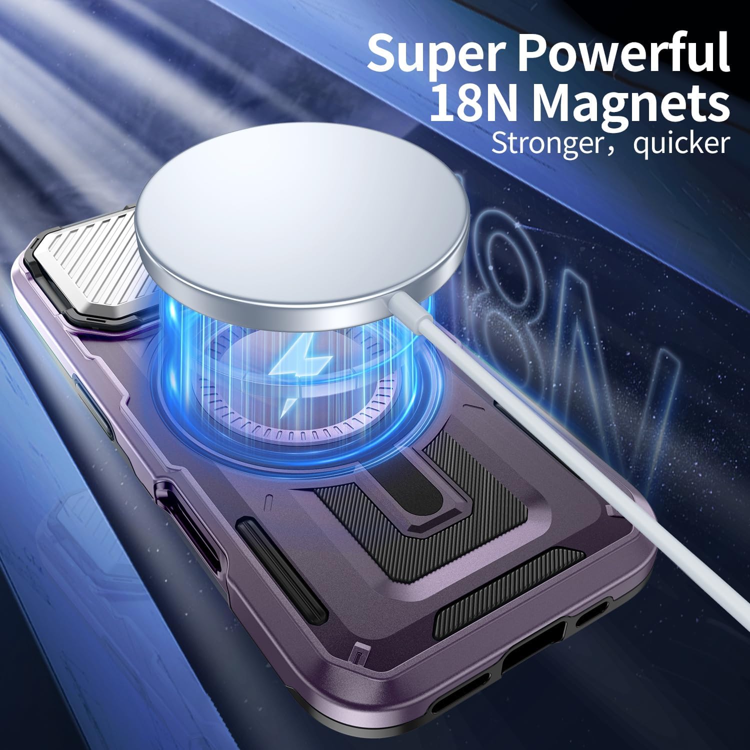Camera Stand Case for iPhone 16 Pro, [Compatible with Mag Safe] [Lens Cover] 2024 Version Military Grade Protective Soft Case for iPhone 16 Pro 6.3 inch Men Women, Purple
