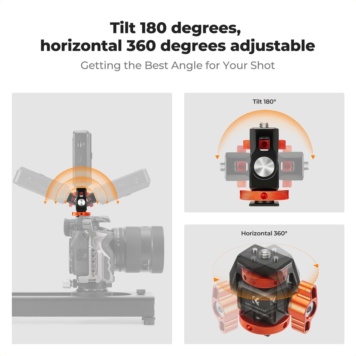 K&F Concept Adjustable Camera Monitor Mount, Aluminum Camera Mount 360° Swivel 180° Tilt with Cold Shoe 1/4" Screw ARRI Anti-Twist Design for 5" & 7" Field Monitor DSLR Action Camera