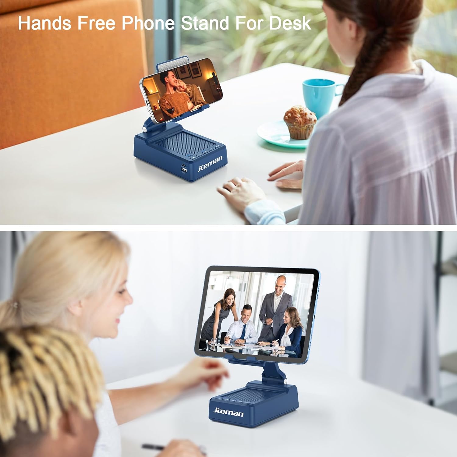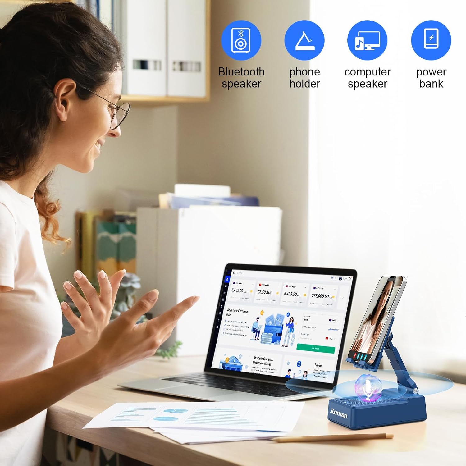 JTEMAN Gifts for Men Women,Cell Phone Stand with Bluetooth Speaker,Cool Tech Gadgets,Unique Birthday Gifts for Men Husband Mom Dad-Blue