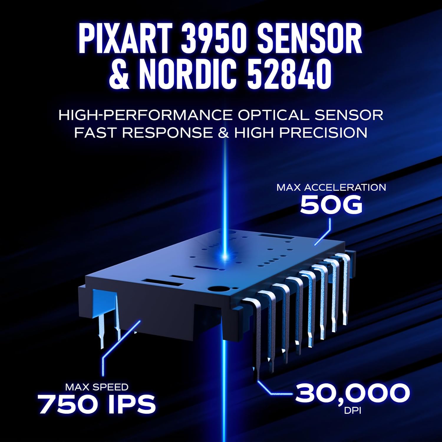 - PixArt PAW3950 Sensor: Our wireless mouse gaming equipped with the PixArt 3950 sensor, specifically designed for competitive gamers, supporting adjustable DPI up to 30,000. Combined with the advanced Nordic 52840 MCU, Enjoys fast response and precision, ensuring you experience professional-grade tracking performance in games, supported by 1-DPI step adjustment for more granular aim and control