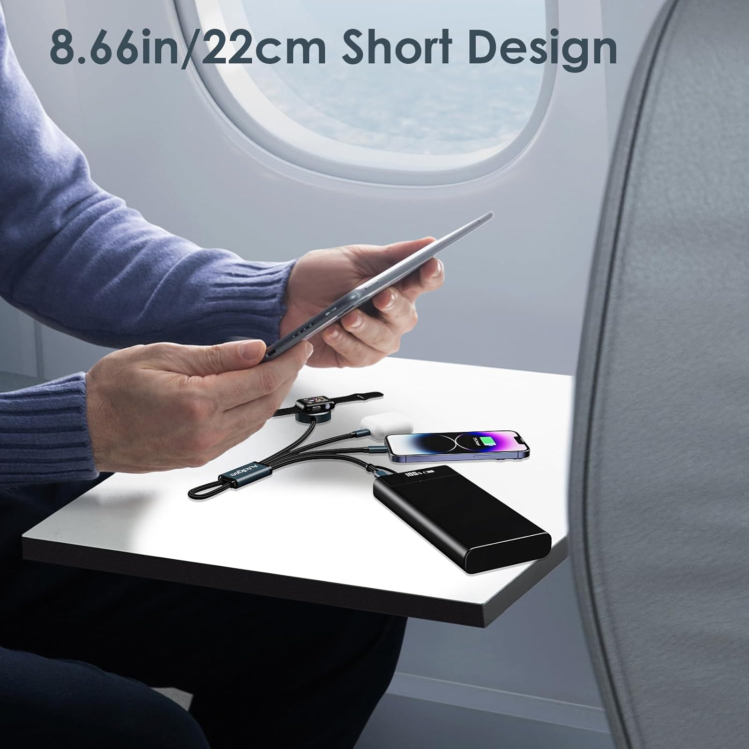 - 🎁Travel Essentials & 8inch/22cm Length:With lightweight and portable design, this 8in 3-in-2 iphone charging cable is fit in your travel bag take it on the go or simply use at home and office, charge your watch anywhere anytime.Great for a desktop accessory to handle multiple different phones.