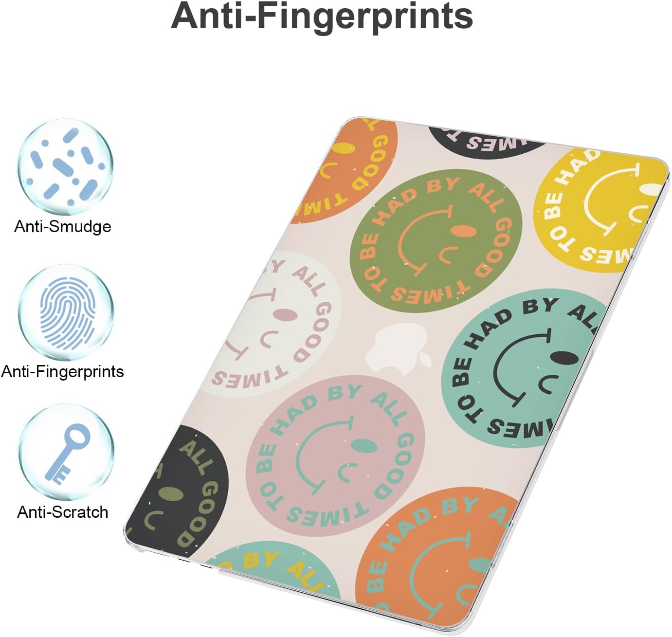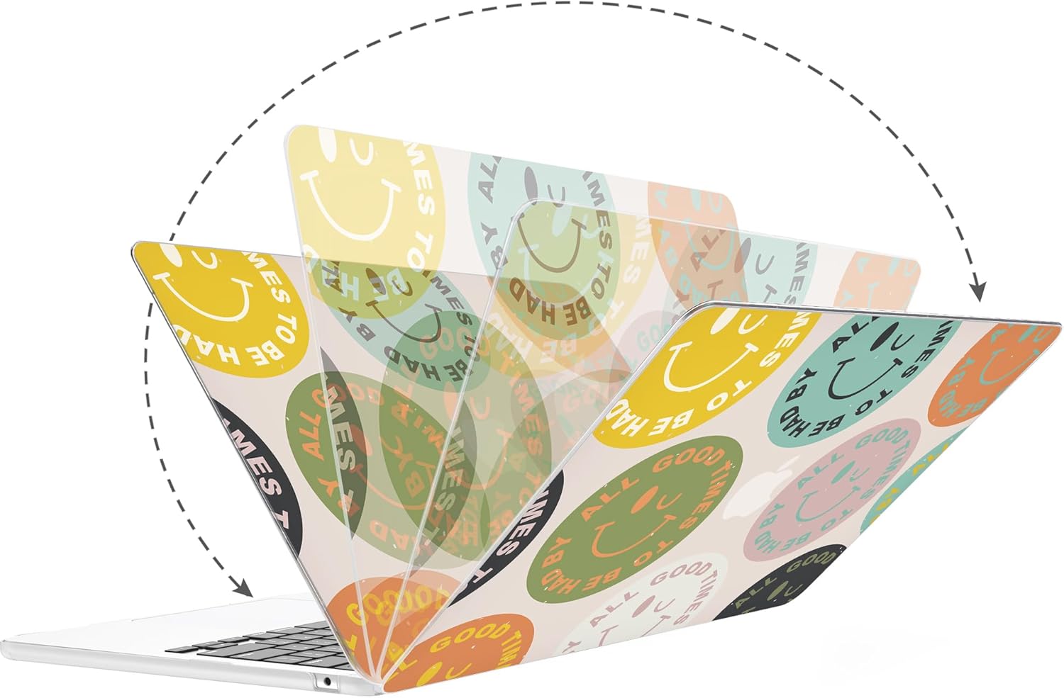 - Package Include: 1 cute colorful round face top case, 1 matte clear bottom case, 1 screen protector and 1 clear keyboard cover. If you have any questions during use, please get in touch with us