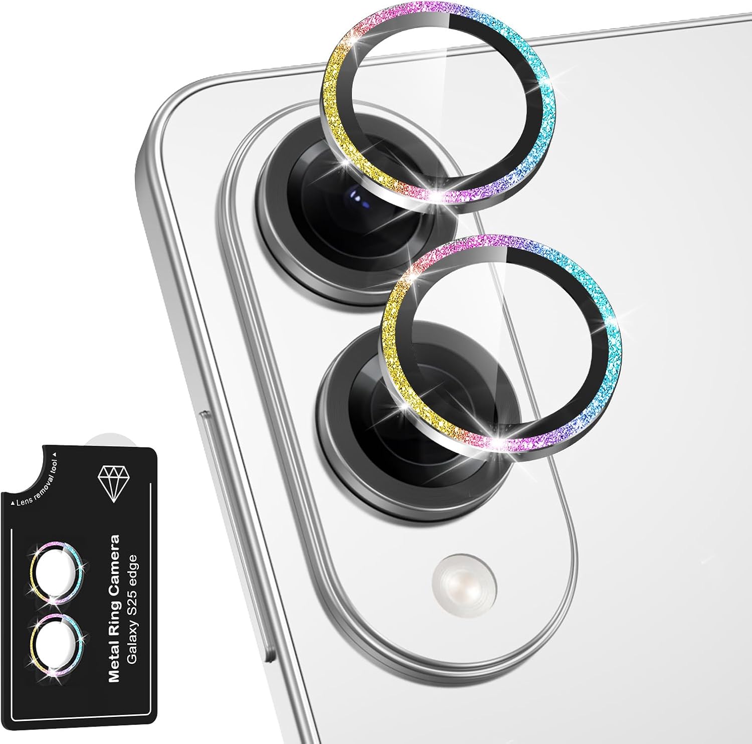 for Samsung Galaxy S25 Edge Camera Lens Protector, Individual Metal Ring Tempered Glass Lens Cover, [Strong Adsorption] Scratch Resistant Ultra-Thin HD Clear Lens Cover, 1 Set-Colorful Sparkly
