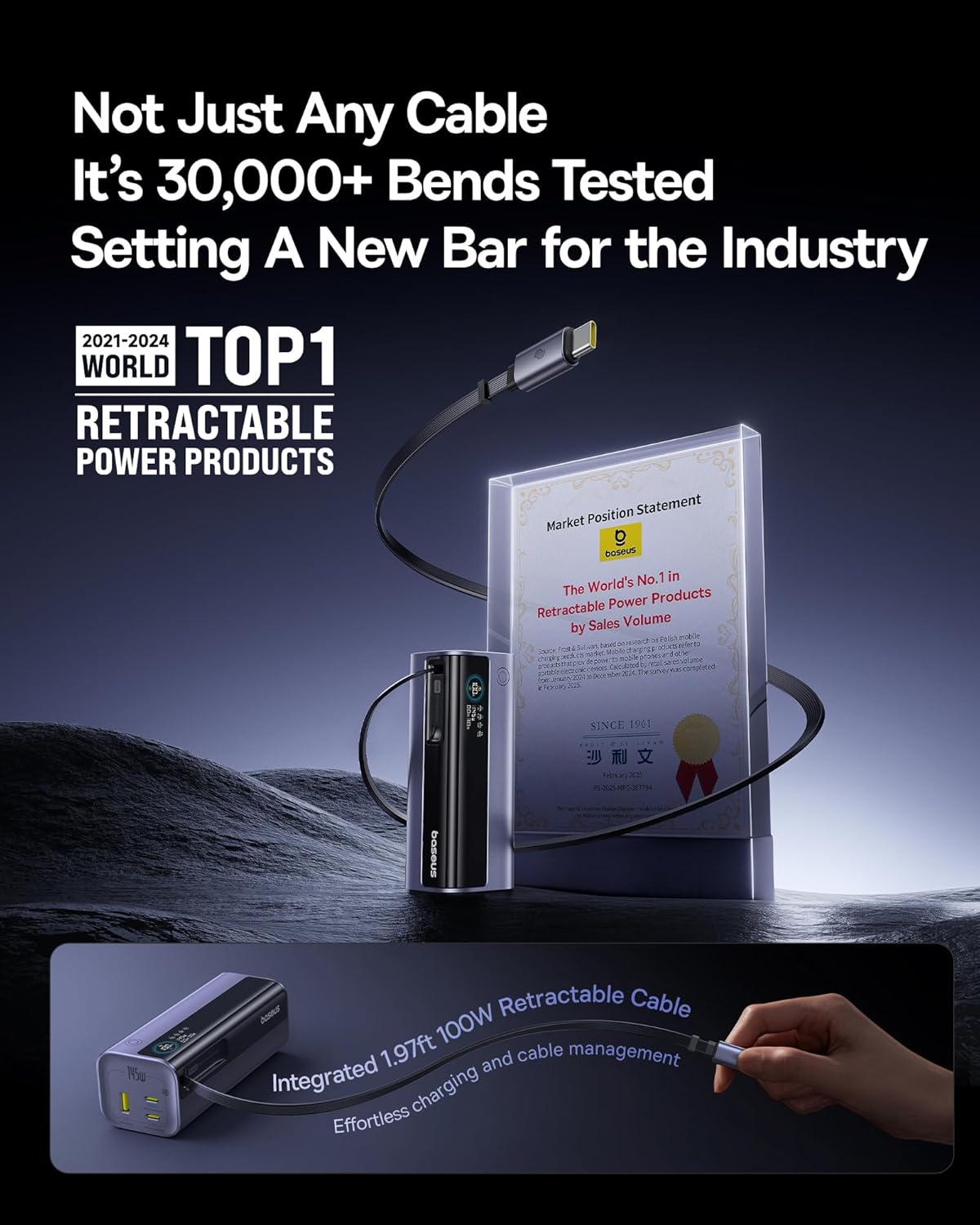 - 2️⃣ 【Built-in 100W Retractable Cable (1.97ft)】 Tangle-Free & Durable, no more messy cables! The power bank's built-in retractable USB-C cable pulls out for instant charging and retracts with a gentle tug. Tested to withstand 30,000 stretches, it’s built for convenience and longevity.