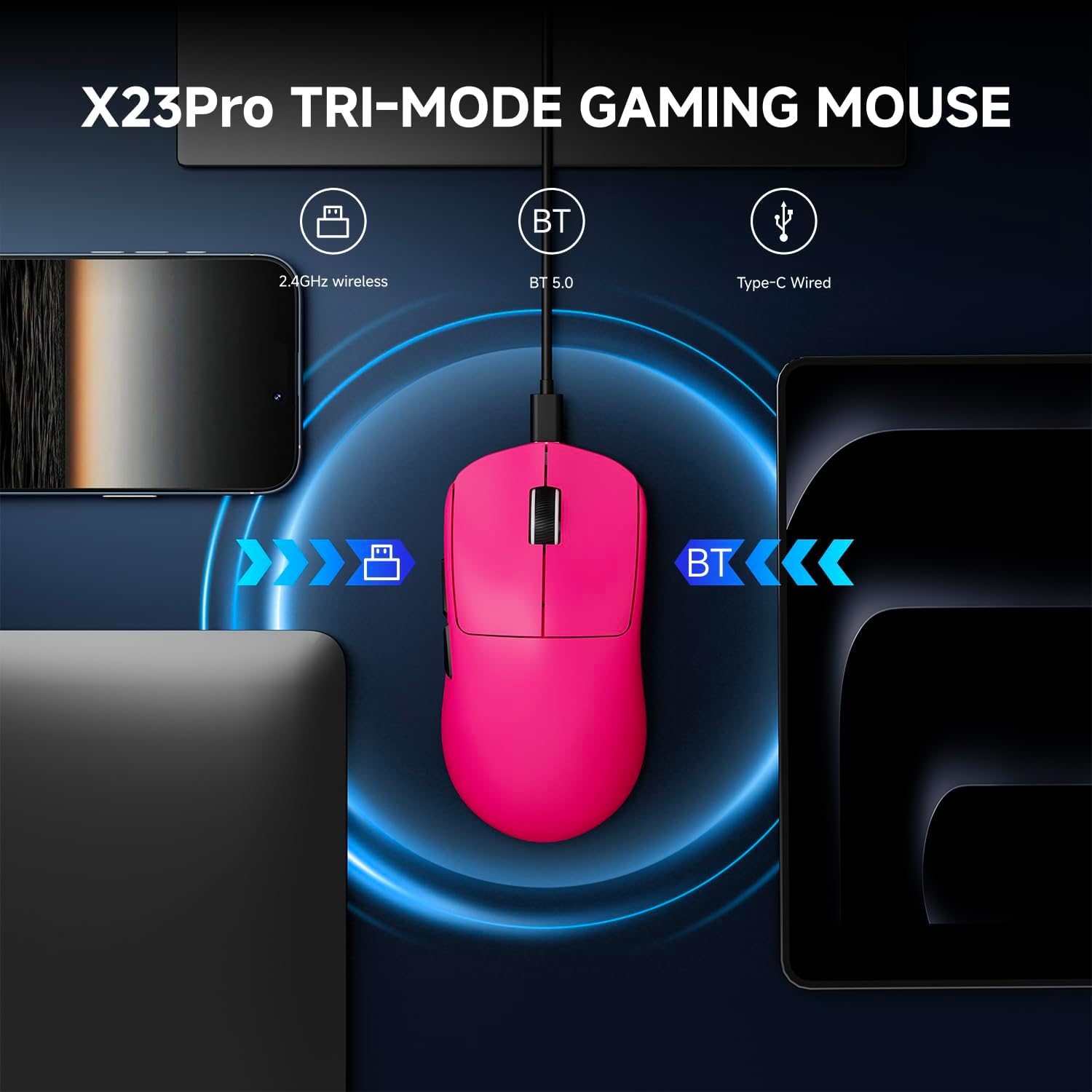 EWEADN X23Pro Wireless Gaming Mouse, 2.4G/BT5.0/USB-C Esports Gaming Mouse, 49g Lightweight Mouse Gaming, 12000 DPI Wireless Mouse with 6 Programmable Buttons,For Laptop/PC/Mac, Raspberry Pink