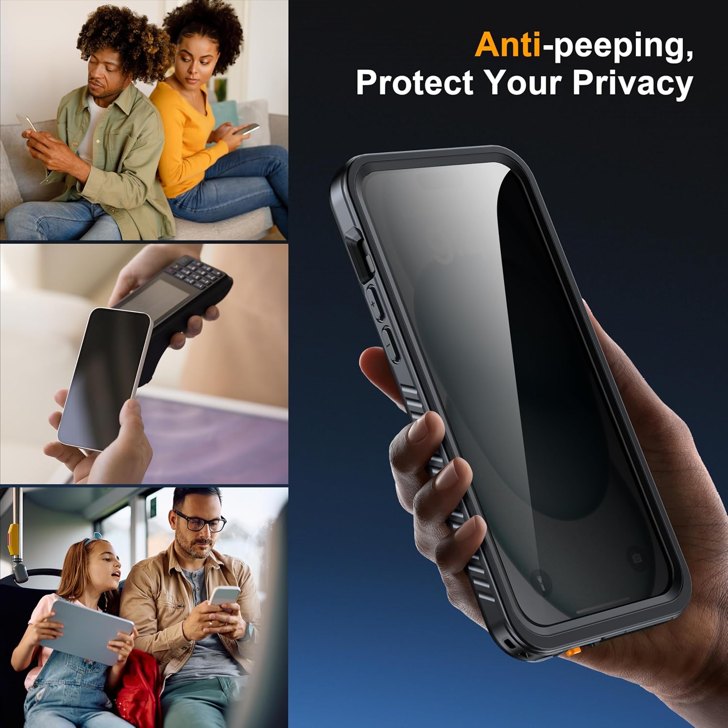 for iPhone 15 Plus Case Waterproof - Built-in Privacy Screen Protector & HD Screen Protector [IP68 Underwater] Shockproof Dustproof Full Body Protection iPhone 15 Plus Phone Case Black