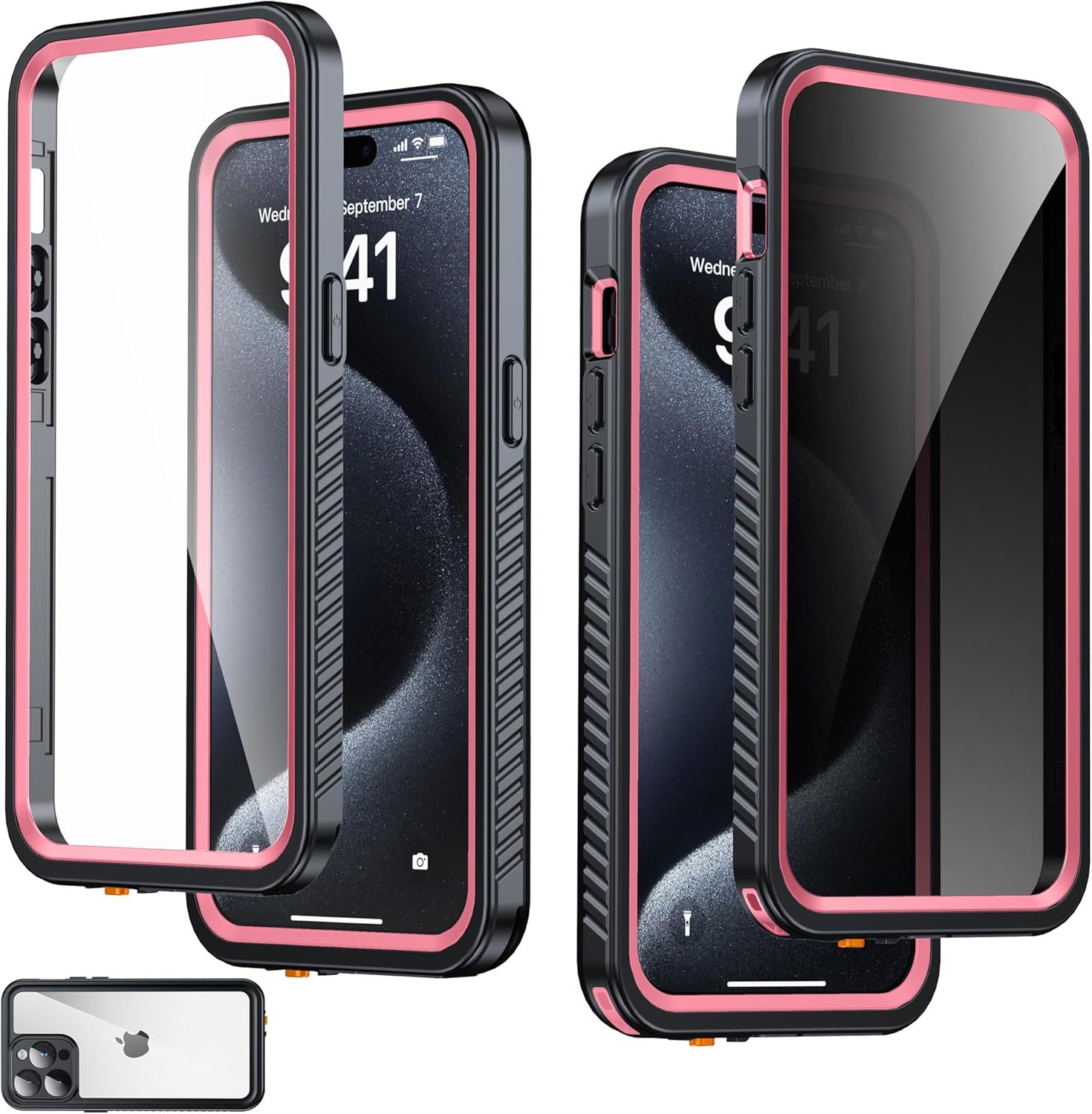 for iPhone 15 Pro Max Case Waterproof - Built-in Privacy Screen Protector & HD Screen Protector [IP68 Underwater] Shockproof Dustproof Full Body Protection iPhone 15 Pro Max Phone Case