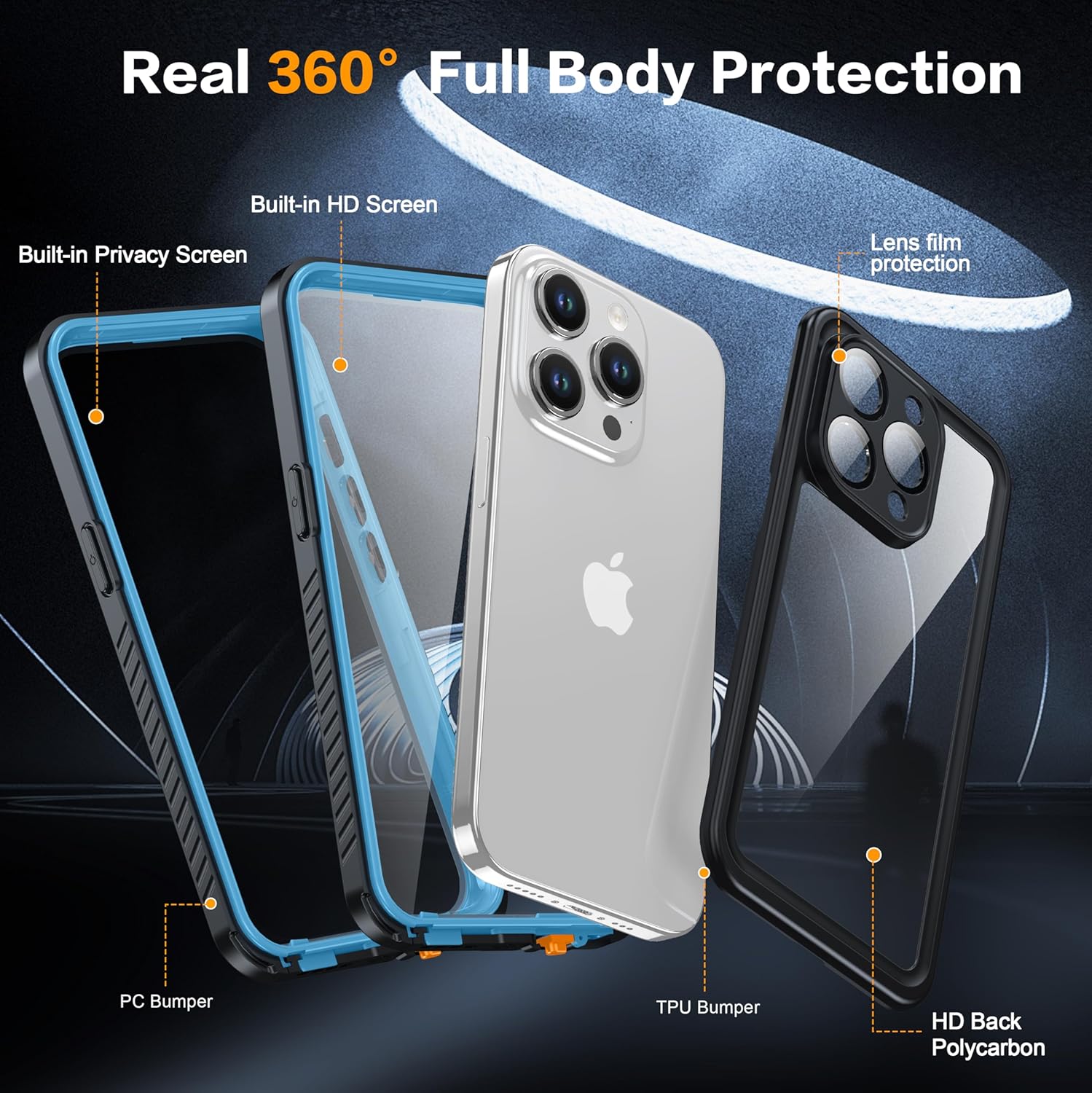 - 【360°Military Protection】The iPhone 15 Pro waterproof case is MIL-STD drop tested and survives drops from up to 14 FT. Two layers and bumper raised frame provide 360 degree rugged complete protection, protect your phone from bumps, dust, dirt and snow, easy to deal with everyday drop accidents.