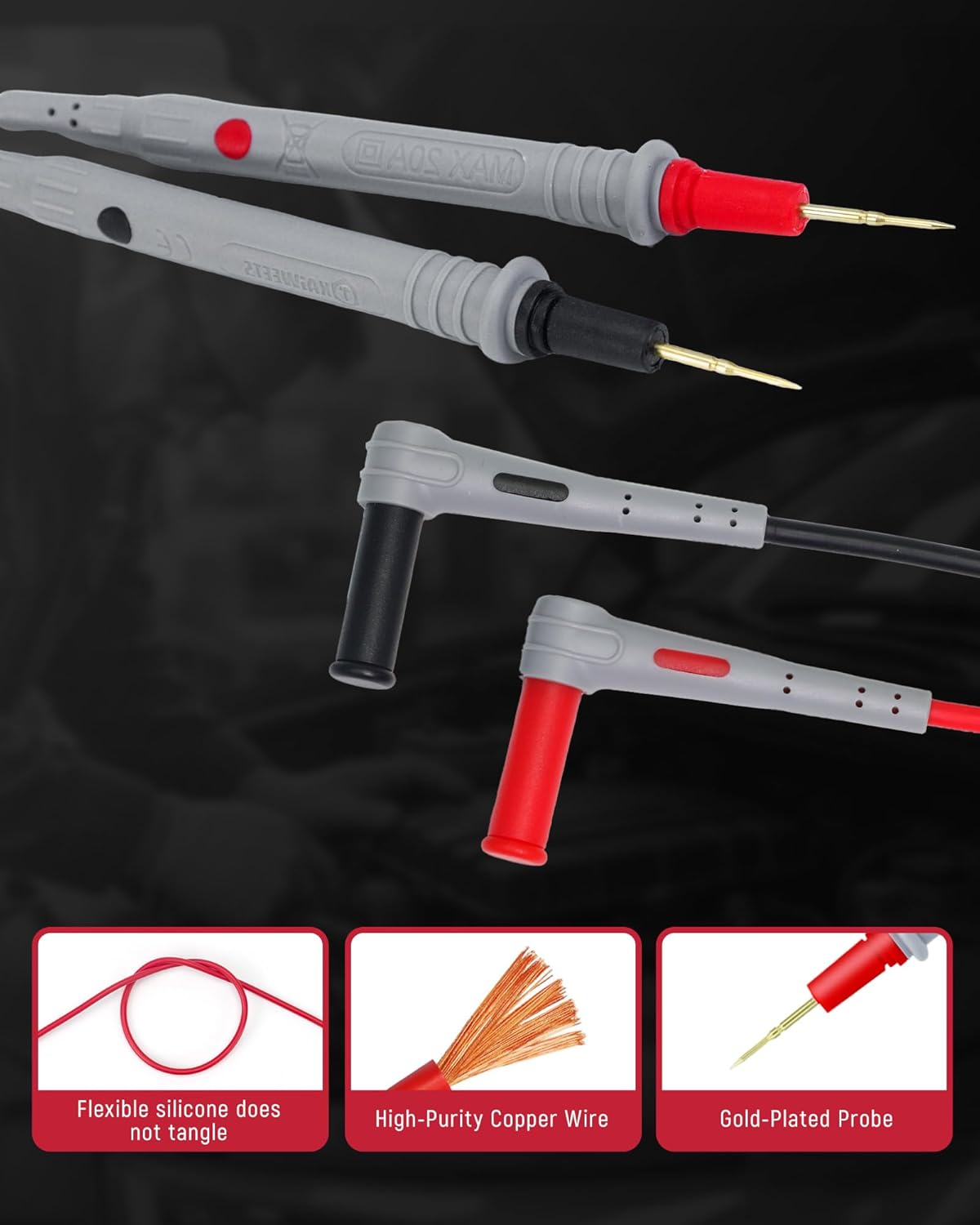 - 【Temperature-Resistant Soft Silicone Material】 - Silicone multimeter leads solve the problem of PVC hardening under heat, offering durability and resistance to high-temperature environments. Non-toxic and eco-friendly, these meter leads remain flexible and anti-tangle even after 24 hours in the refrigerator, ensuring long-term use in various test conditions.