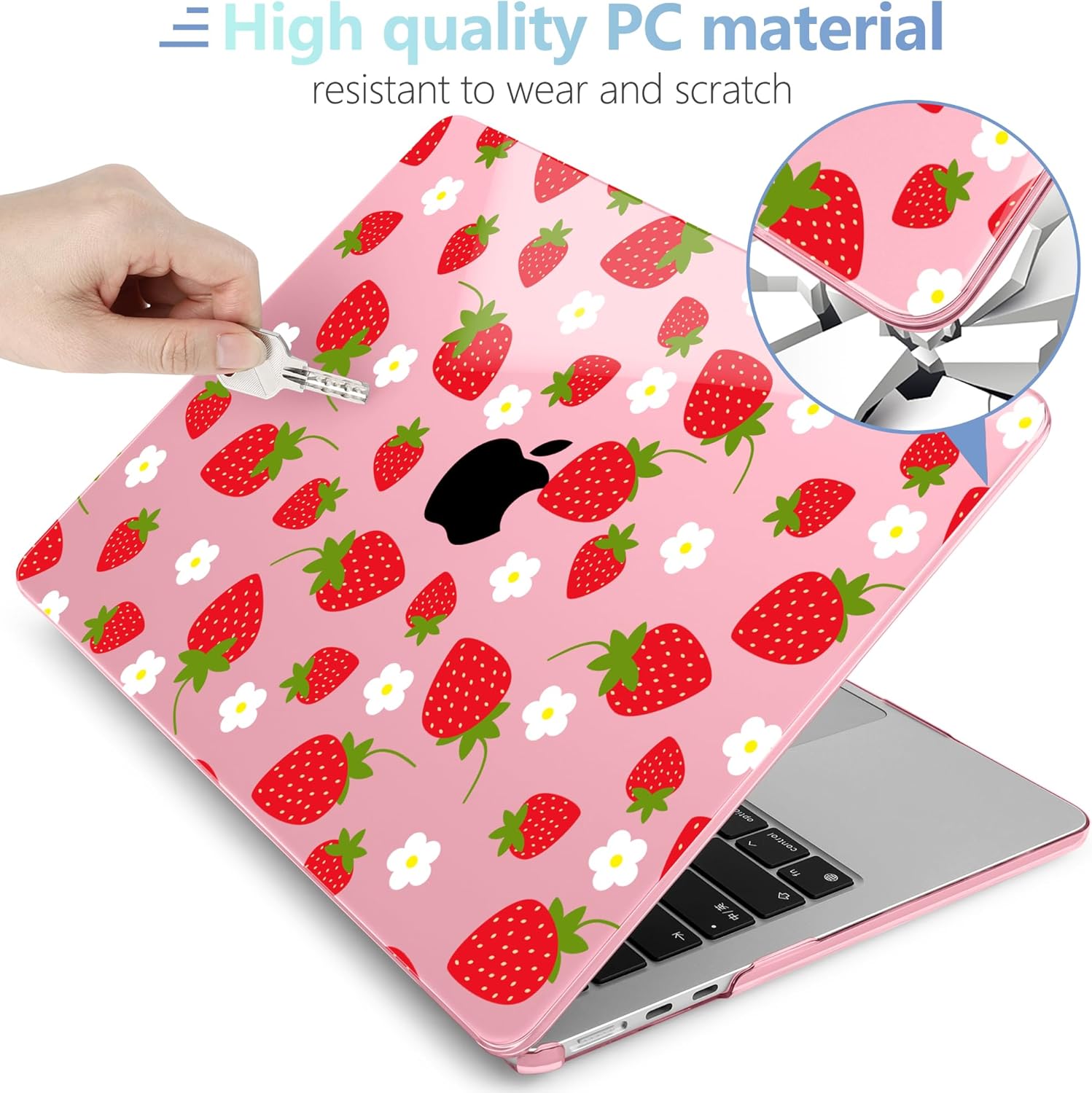 MEEgoodo for M4/M3/M2 MacBook Air 15.3 inch Case 2025 2024 2023, Case Fit Model (A3241/A3114/A2941) for MacBook Air 15 inch, Laptop Hard Shell with Keyboard Cover, Strawberries & Flowers