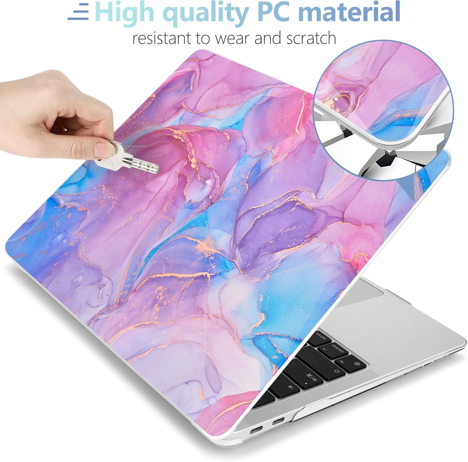 MEEgoodo for MacBook Air 13 inch Case 2021 2020 2019 2018 Released A2337 M1 A2179 A1932 with Touch ID, Plastic Hard Shell & Keyboard Cover Compatible with MacBook Air Case 13.3, Pink Marble Texture